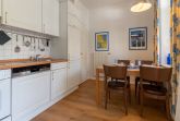 Der angrenzende Wohnbereich auf der geschlossenen Veranda bietet zwei weitere Schlafplätze und eine angenehme Wohlfühlatmosphäre. Von hier aus gelangen Sie direkt in die separate Küche mit Zugang zum überdachten Balkon perfekt für ein Frühstück an der frischen Luft oder ein Glas Wein am Abend.