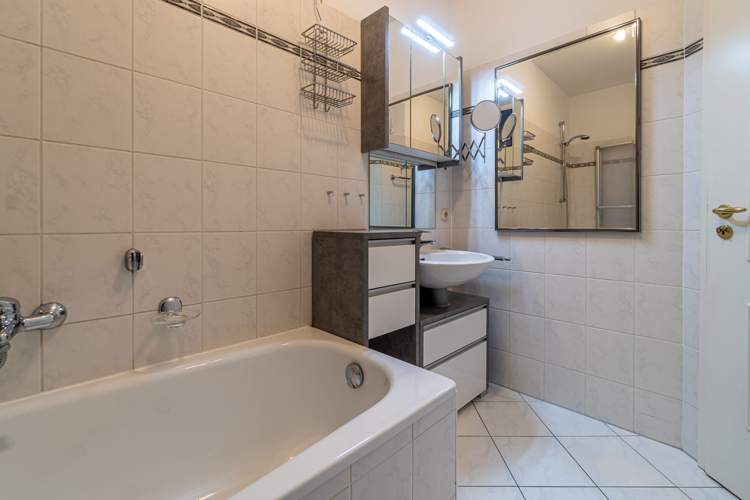 Das Badezimmer mit Badewanne lädt nach einem Tag am Meer zum Entspannen ein.