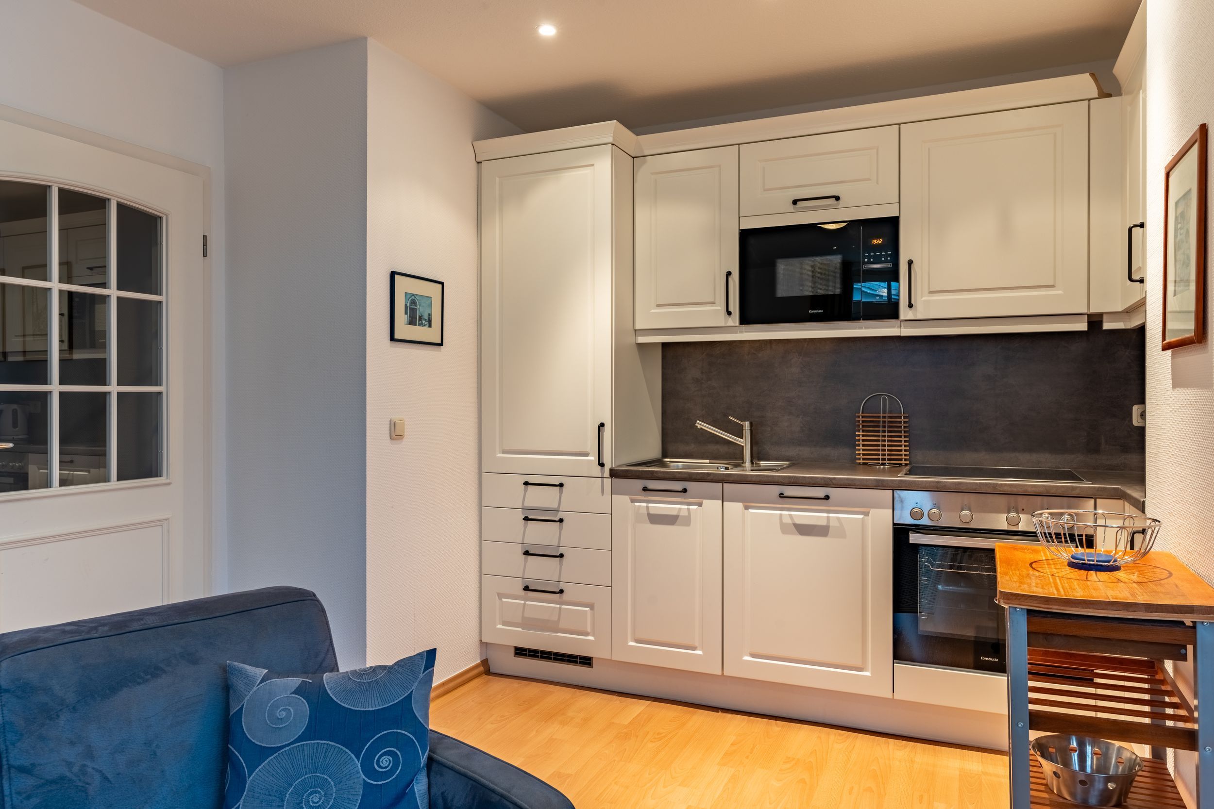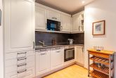 Die im Wohn/Essbereich integrierte offene Küche lässt keine Wünsche offen und sorgt für Wohlfühl-Atmosphäre. Im Wohnbereich befindet sich eine gemütliche Couchecke mit TV sowie ein Essbereich. Neben Backofen, Geschirrspüler und Gefriermöglichkeit sind natürlich auch Gläser, Besteck und Elektrogeräte vorhanden.