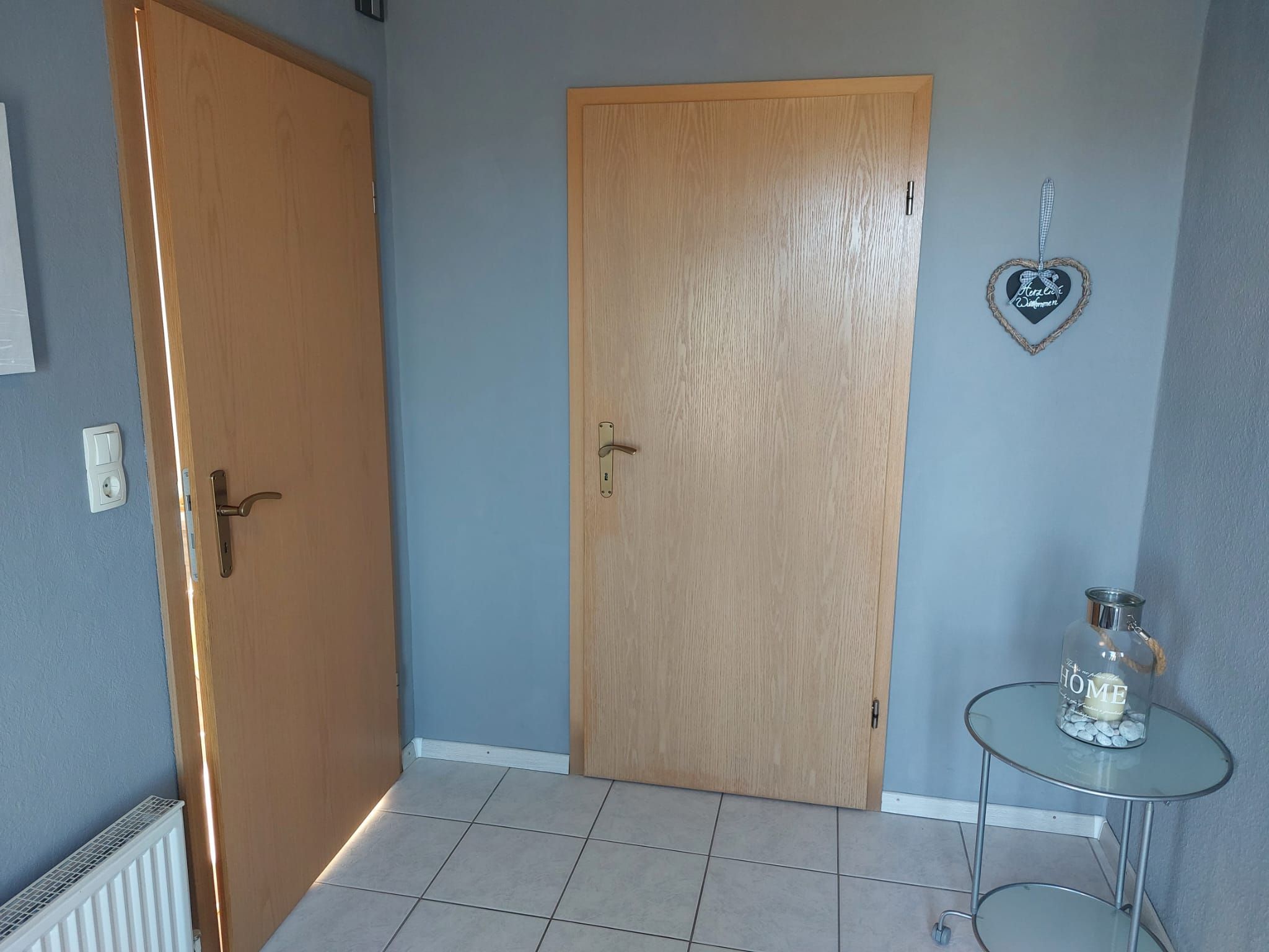 Durch einen kleinen Flur gelangen Sie rechts ins Badezimmer und zur linken ins Schlafzimmer.