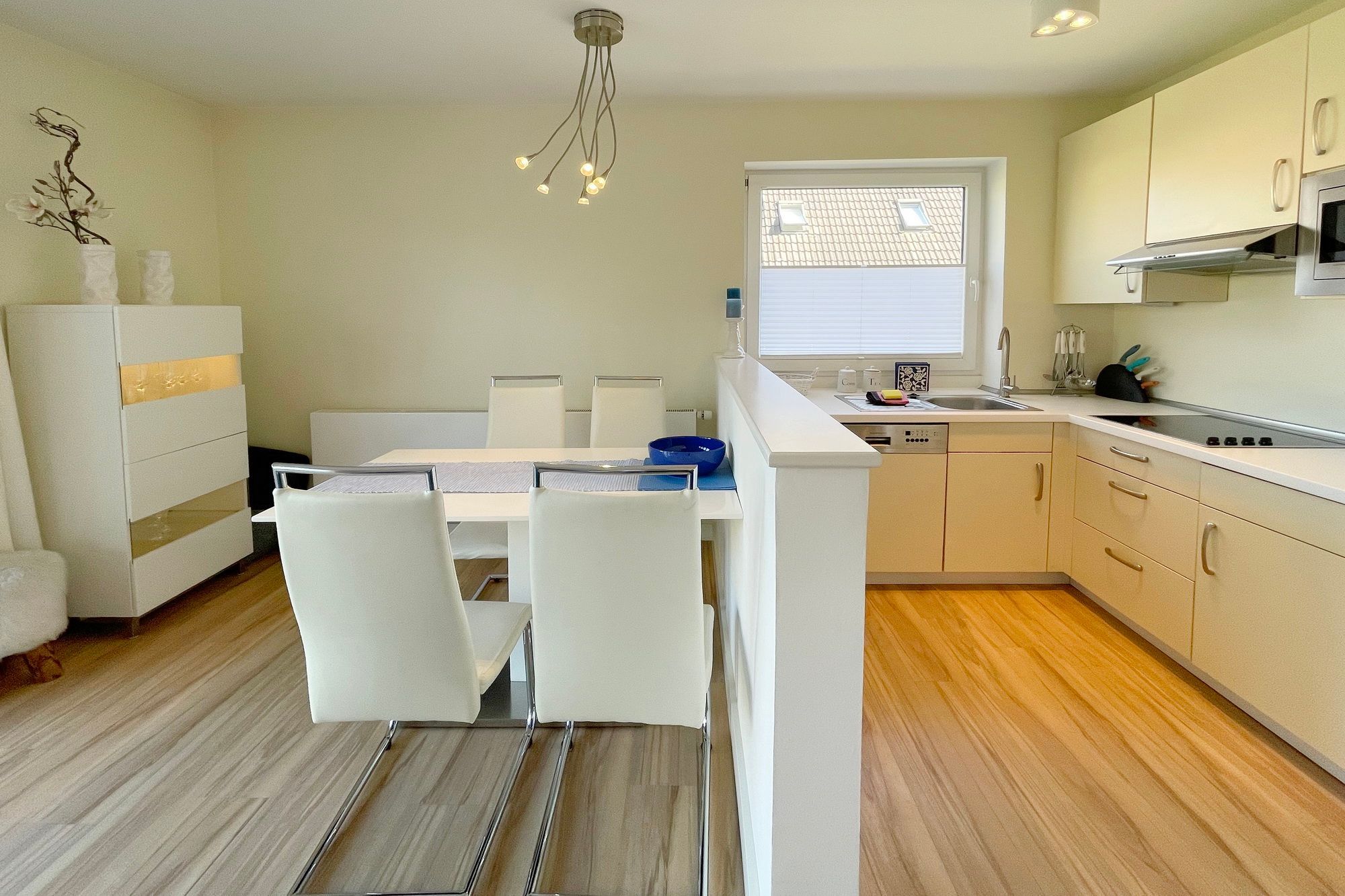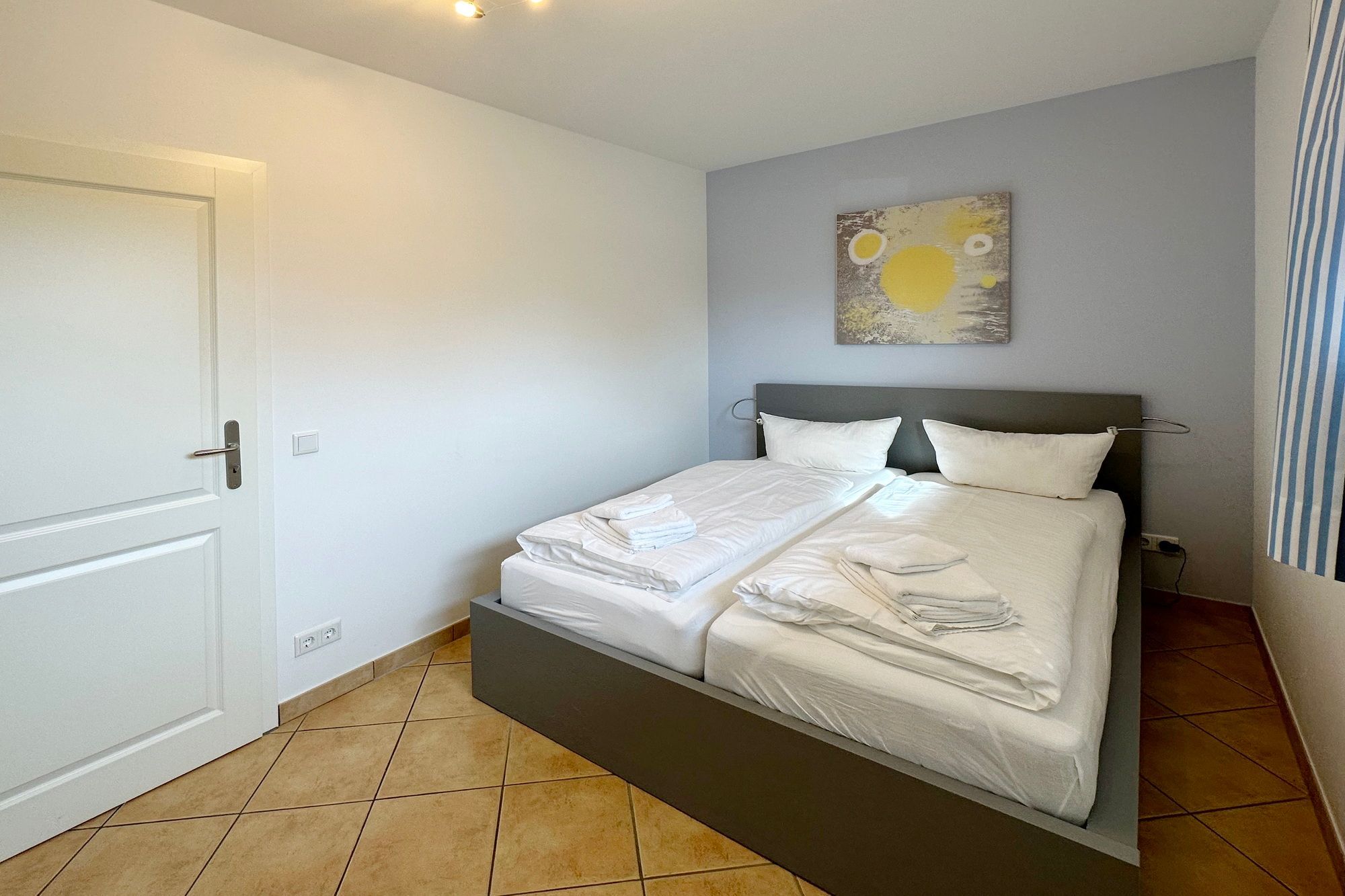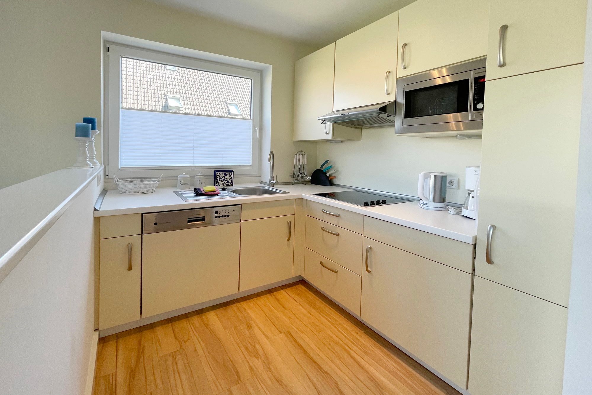 Die 2-Zimmer-Ferienwohnung befindet sich im Erdgeschoss und liegt in einer ruhigen Lage in Westerland. Sie verfügt über ein Wohnzimmer und eine große Terrasse, die nach Westen ausgerichtet ist. Ihnen stehen Gartenmöbel und ein eigener Strandkorb zur Verfügung. Das Wohn-Esszimmer ist mit einer offenen Küche, einer Essecke und einer Couch ausgestattet. Außerdem gehören ein großer Flatscreen-Fernseher mit Blue-Ray-Player und vielen Extras zur Ausstattung. Das Schlafzimmer verfügt über ein Doppelbett und einen zusätzlichen Fernseher.
