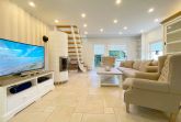 Hier befindet sich auch die offene, vollständig ausgestattete Küche mit Backofen, Geschirrspüler und der Zugang auf die überdachte Terrasse in westlicher Ausrichtung.