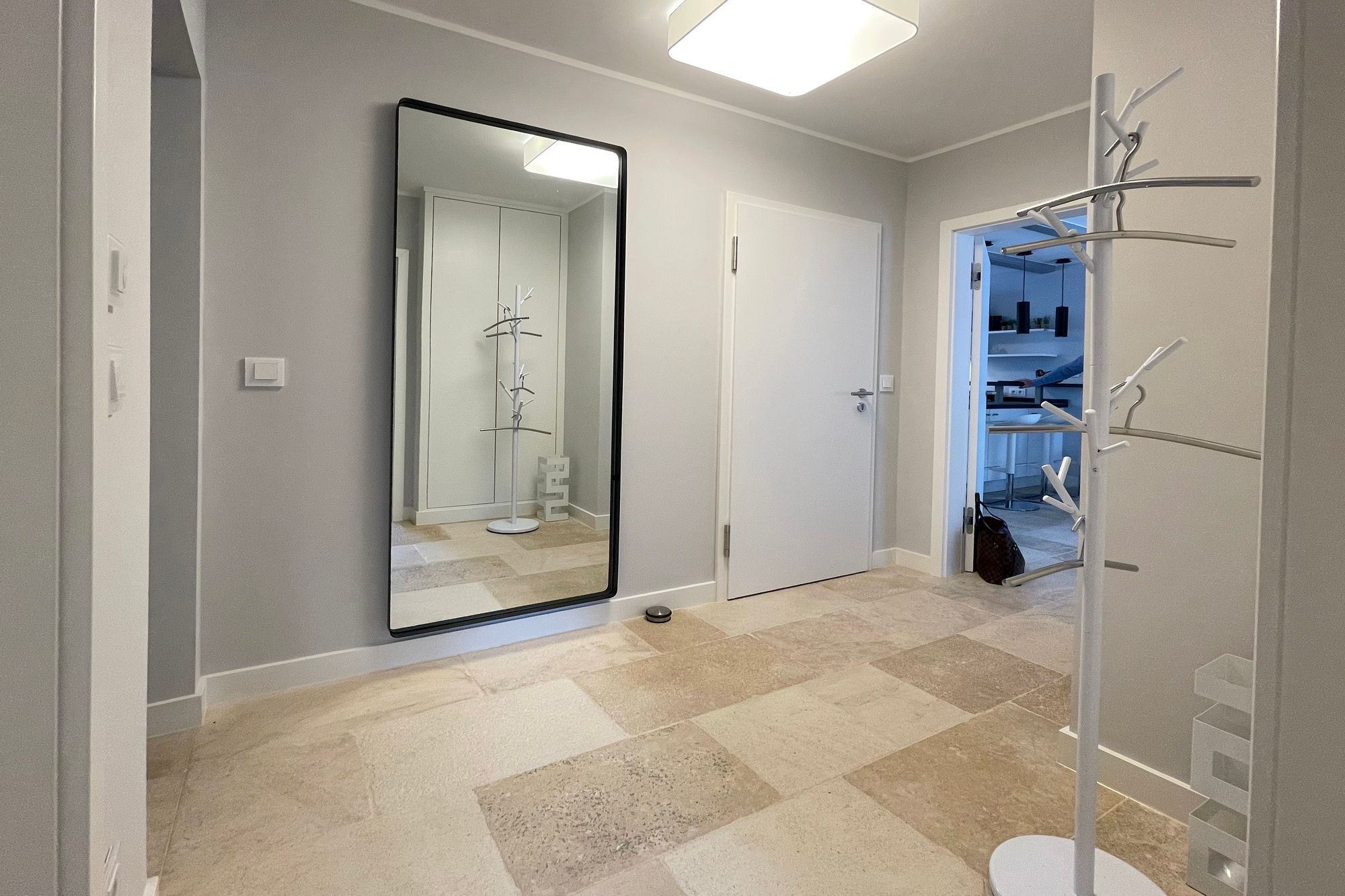 Zur Wohnung gehört ein PKW-Stellplatz vor der Garage, in der Sie auch Ihre Räder abstellen können. Von der eigenen Terrasse haben Sie Zugang zum Garten und zu einem zusätzlichen Raum mit Waschmaschine und Trockner, die Ihnen zur alleinigen Nutzung zur Verfügung stehen. Hier befindet sich auch die Sauna zu alleinigen Nutzung. Die Ferienwohnung kann mit 4-5 Erwachsenen und 1-2 Kindern ( maximal 6 Personen ) belegt werden.