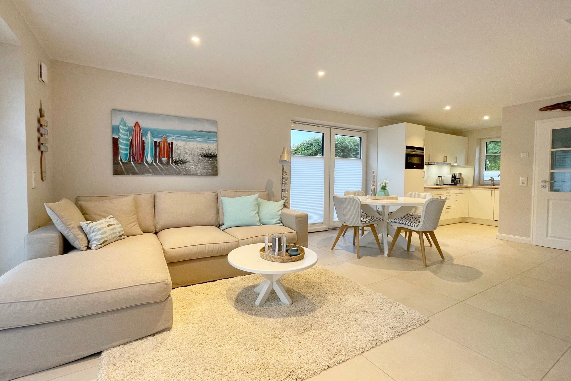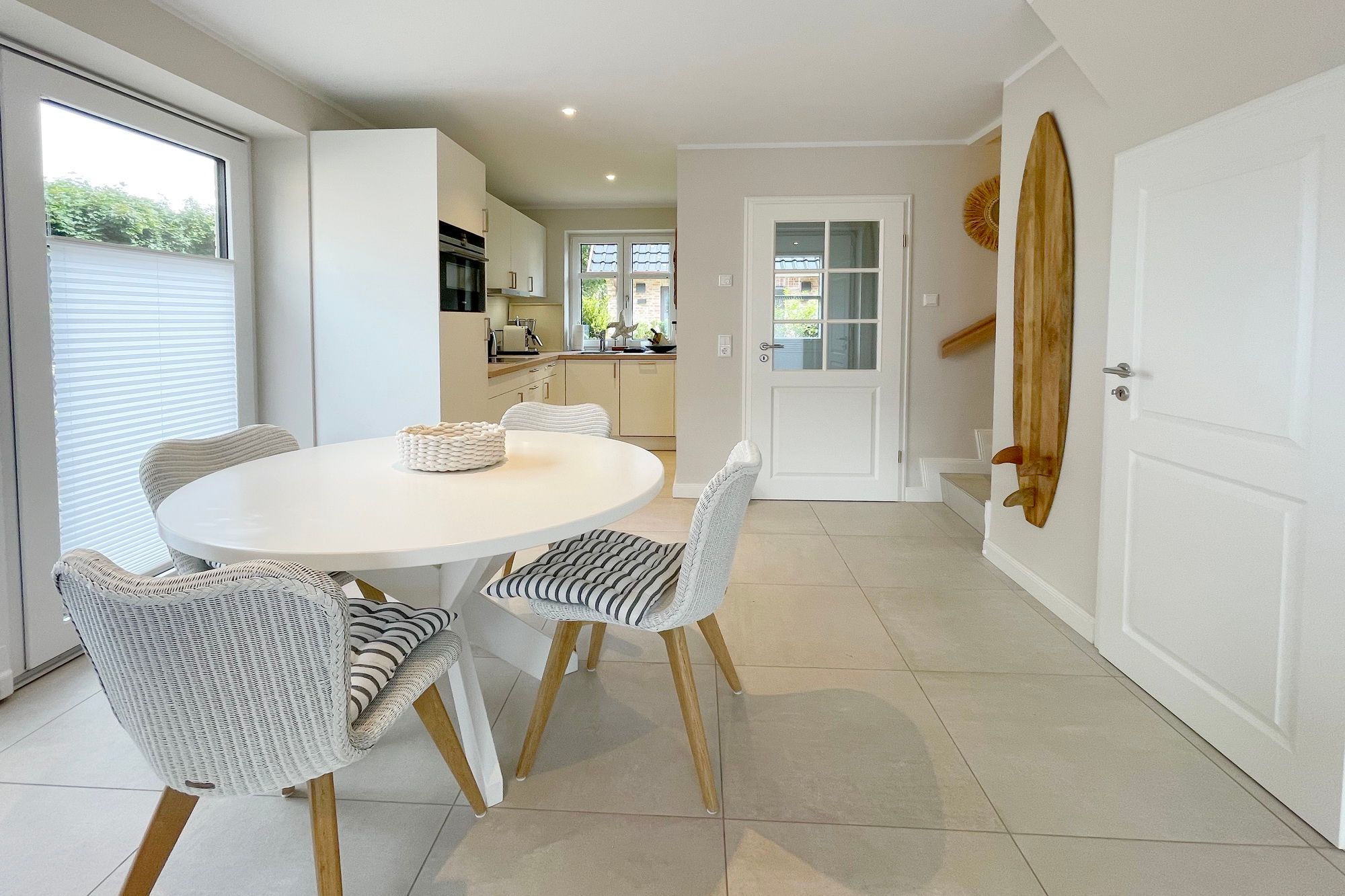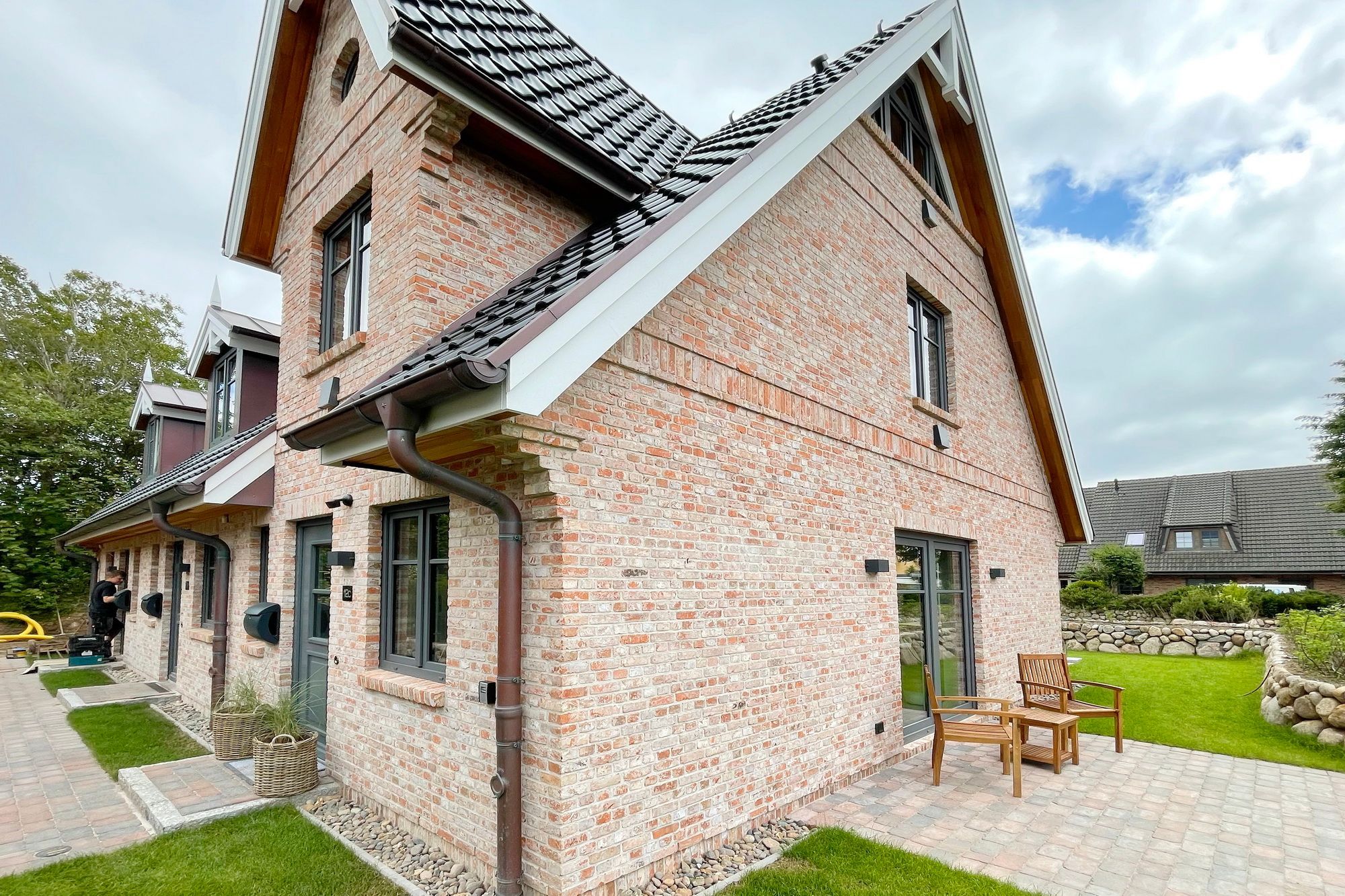 Exklusives Reihenendhaus in ruhiger Lage an der Ortgrenze zu Westerland. Das Ferienhaus wurde 2022 fertig gestellt und wurde im modernen Beach-House Style eingerichtet. Tischlerarbeiten in den Schlafzimmern und weitere Einrichtungsdetails runden das positive Gesamtbild ab.
