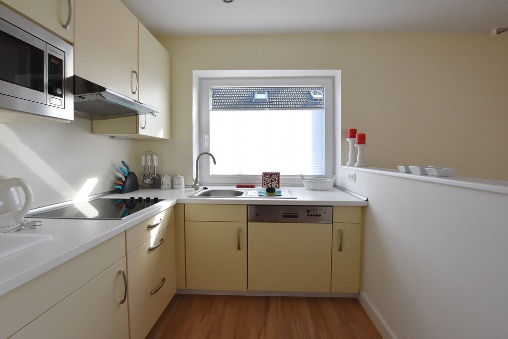 Schöne 2-Zimmer-Ferienwohnung ( Obergeschoss ) in ruhiger Lage Westerlands mit Wohnzimmer, anschliessendem möbliertem Balkon, der nach Westen ausgerichtet ist. Das Wohn- / Esszimmer verfügt über eine offene Küche mit Essecke und Couch. Ein großer Flatscreen-Fernseher mit Blue-Ray-Player und vielen Extras gehört ebenfalls zur Ausstattung. Das Schlafzimmer verfügt über ein Doppelbett und ein zusätzliches TV.