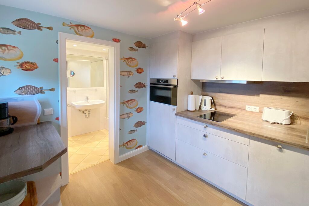 Kleines Hausteil im Maisonettestil für 2 Personen mit Terrassenbereich und Wattblick wunderbar n der Nähe der Keitumer Kirche gelegen. Dieses gemütliche Refugium verfügt über einen Wohn-/ Essbereich, im OG ein Schlafzimmer mit Doppelbett und Einbauschränken, eine separate moderne Landhausküche und ein modernes Duschbad. Im Wohnbereich stehen Ihnen 2 Sessel ( Liegefunktion ) mit Loungecharakter zur Verfügung. Genießen Sie den freien Blick auf das Wattenmeer und die Küste Keitums durch das Panoramafenster vom Wohnzimmer oder direkt von der Terrasse.