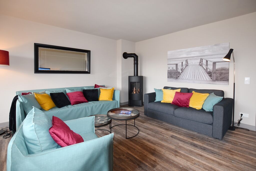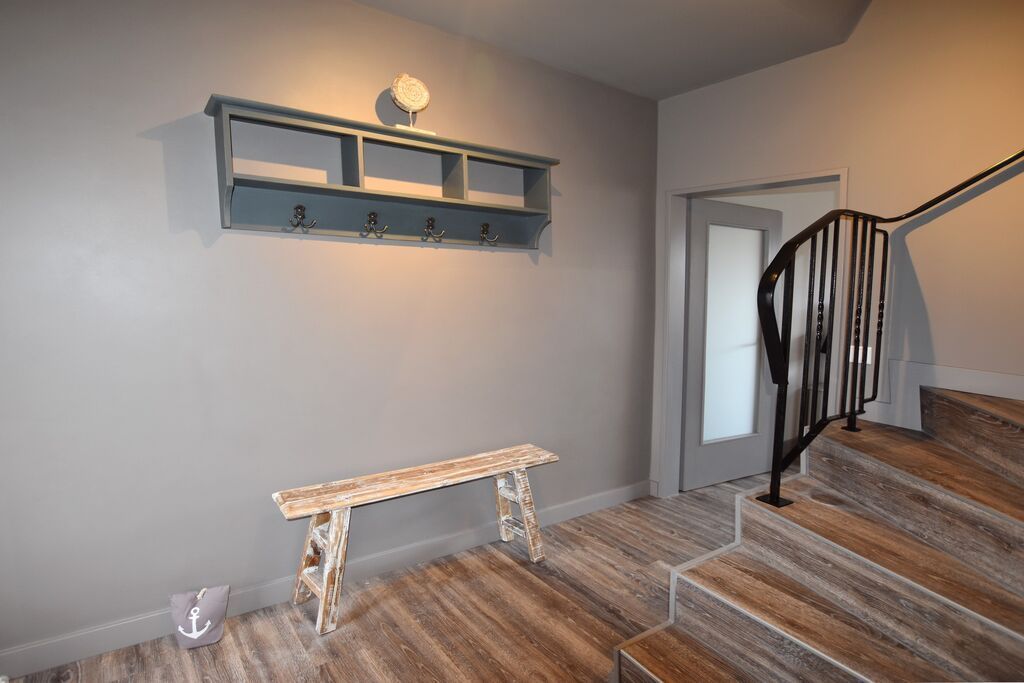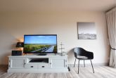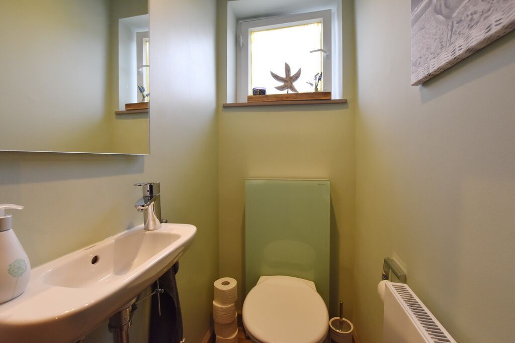 Kommen Sie vom Wind durchpustet zurück in die Barke 17, können Sie sich erst einmal am Gas-Kaminofen in der gemütlichen Couch-Ecke aufwärmen. Verbinden Sie dann noch die Bose-Soundanlage mit Ihrem Handy, können Sie gleich Ihre Entspannungs- oder Gute-Laune-Musik anstellen. Urlaub pur! Oder lassen Sie sich von einem Krimi auf dem großen Fernseher fesseln. Bei gutem Wetter können Sie sich an ihrer eigenen Terrasse und dem dazugehörigen ( komplett eingezäuntem ) Garten erfreuen. Im Erdgeschoss finden Sie außerdem noch ein Gäste-WC.