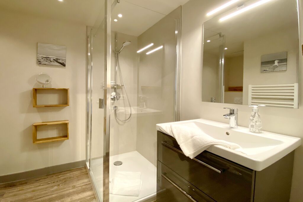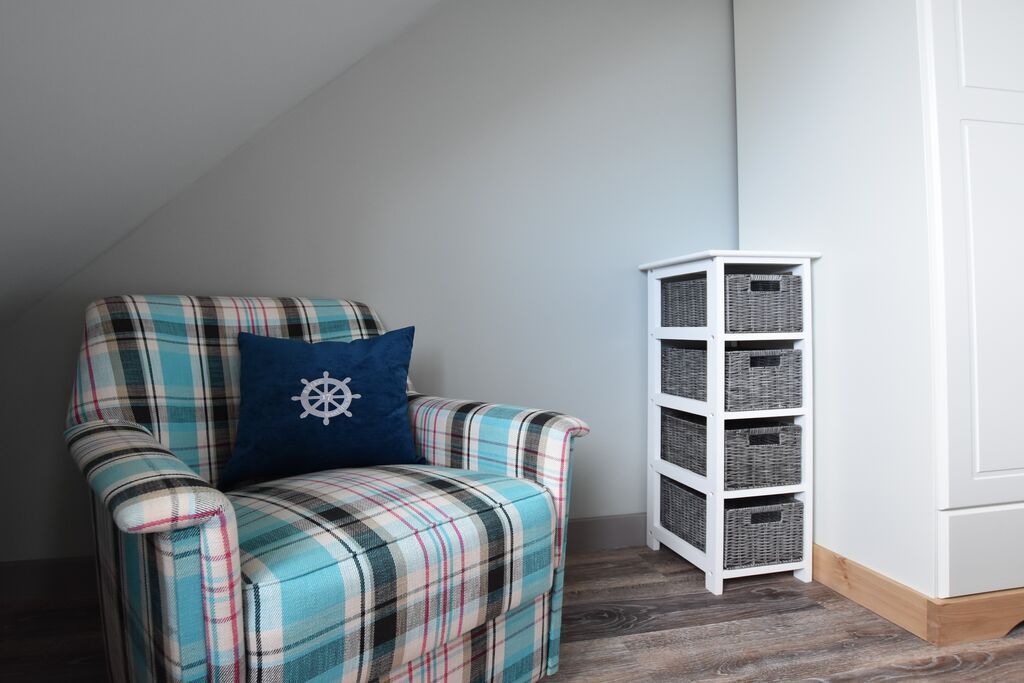 Im Obergeschoss erwarten Sie zwei großzügige Schlafzimmer und das Badezimmer mit komfortabler Dusche und schickem Waschtisch. Die Zimmer sind gemütlich eingerichtet und hübsch gestaltet. Die freundliche Ausstrahlung trägt dazu bei, dass Sie sich rasch wohl fühlen. Jeder Schlafraum verfügt über einen eigenen Fernseher und einen freien Blick in den Himmel.