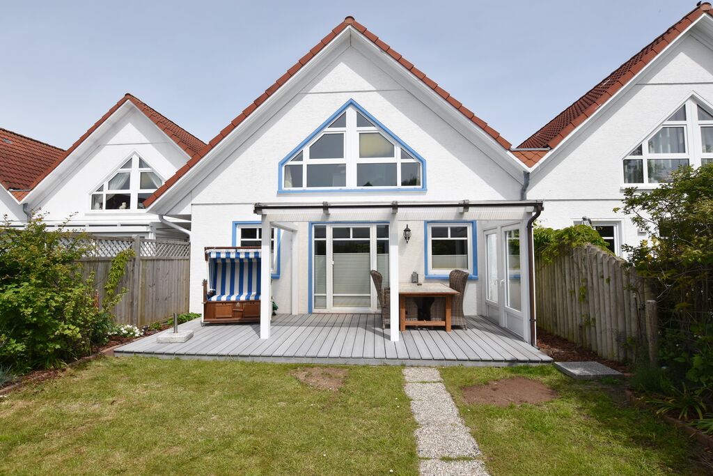 Von hier aus haben Sie auch Zugang zum abgeschlossenem Garten in südlicher Ausrichtung, auf der ca.18m² großen WPC-Terrasse mit Rattan Sitzmöbeln läßt sich der Urlaub wunderbar geniessen.