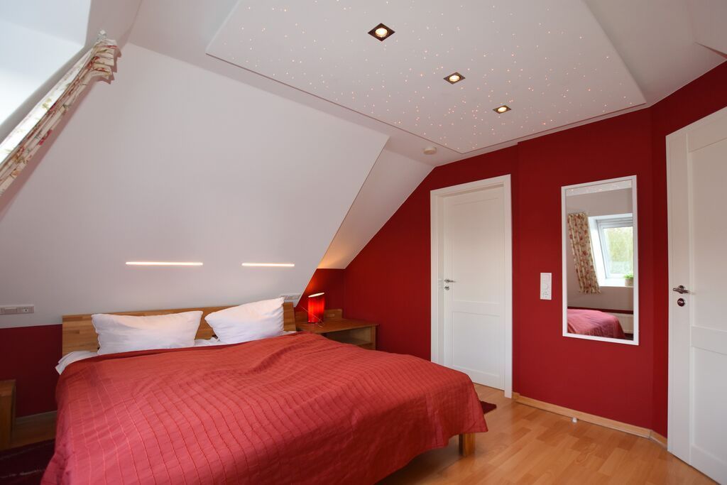 Moderne Ferienwohnung ( OG / DG )mit Balkon, Wohnzimmer mit gemütlicher Sitzgruppe und Eßecke, offene Küche mit Cerankochfeld, und Geschirrspüler, Smart-TV, 2 Schlafzimmer für je 2 Personen ( 1x Doppelbetten, 2x Einzelbetten ) mit jeweils eigenem Badezimmer mit Dusche WC und Waschbecken, im UG befinden sich für die Gäste des Hauses Waschmaschine und Trockner gegen Gebühr. 1 PKW-Stellplatz auf dem Grundstück. Für die Gäste im Ruusenhüs steht ein gemeinschaftlich genutztes Gartenhaus für Fahrräder zur Verfügung. Gerne dürfen Sie hier ein gut erzogenes Haustier mitbringen. Dafür wird dann eine einmalige Haustiergebühr berechnet.