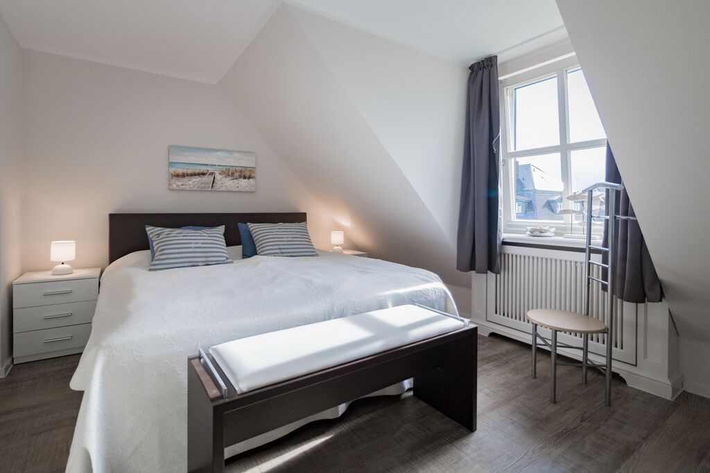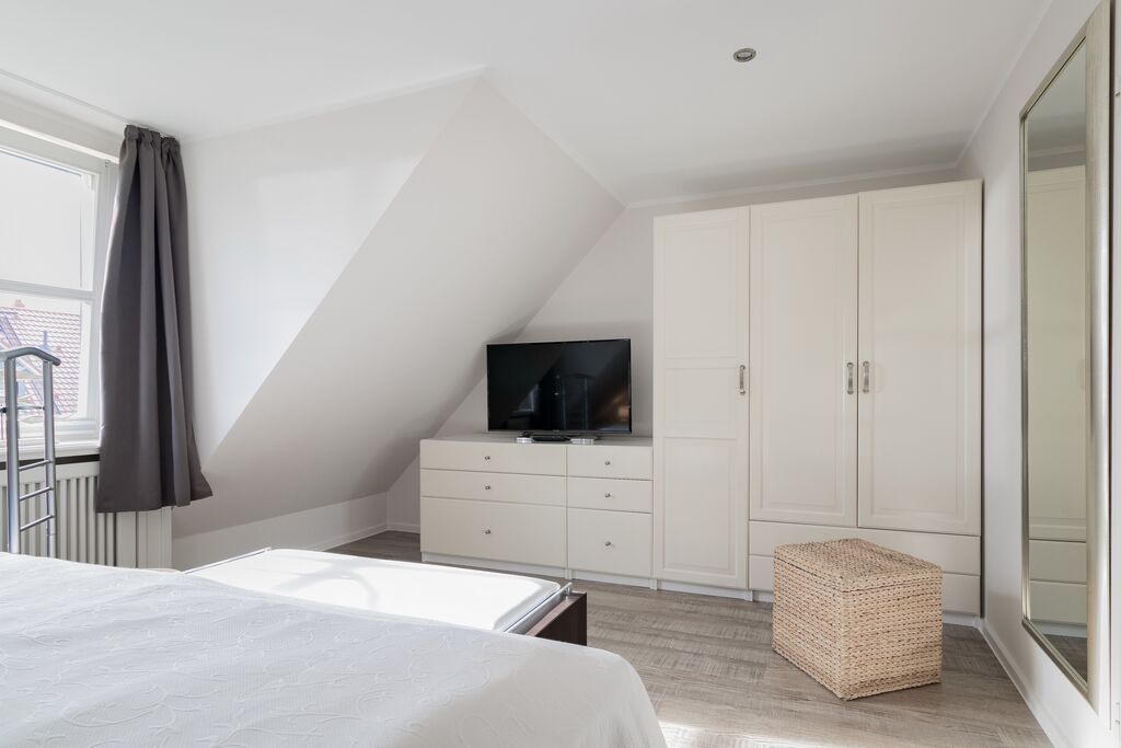 Obergeschoss: 1 Schlafzimmer mit Doppelbett, Kleiderschrank und zusätzlichem TV, 1 Schlafzimmer mit Doppelbett und zusätzlichem TV.