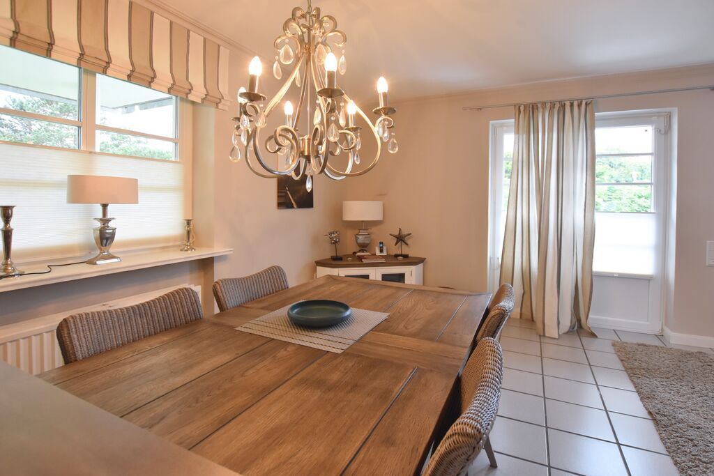 Große und moderne 3 Zimmer-Ferienwohnung, ( ca 100 qm EG/UG ) in einem Zweifamilienhaus, mit West-Terrasse auf eingewachsenem Gartengrundstück im Norden von Westerland, jedoch zentral gelegen. Die Friedrichstraße und auch der Strand sind in wenigen Minuten zu Fuß zu erreichen. Großer Wohnraum mit Essecke und Couchgarnitur mit Flatscreen TV, Stereoanlage, Telefon mit Flatrate ins deutsche Telefonnetz, W-LAN und direktem Terrassenzugang. Die Küche ist mit Spülmaschine, Cerankochfeld, Backofen, Mikrowelle und Kühlschrank ausgestattet.