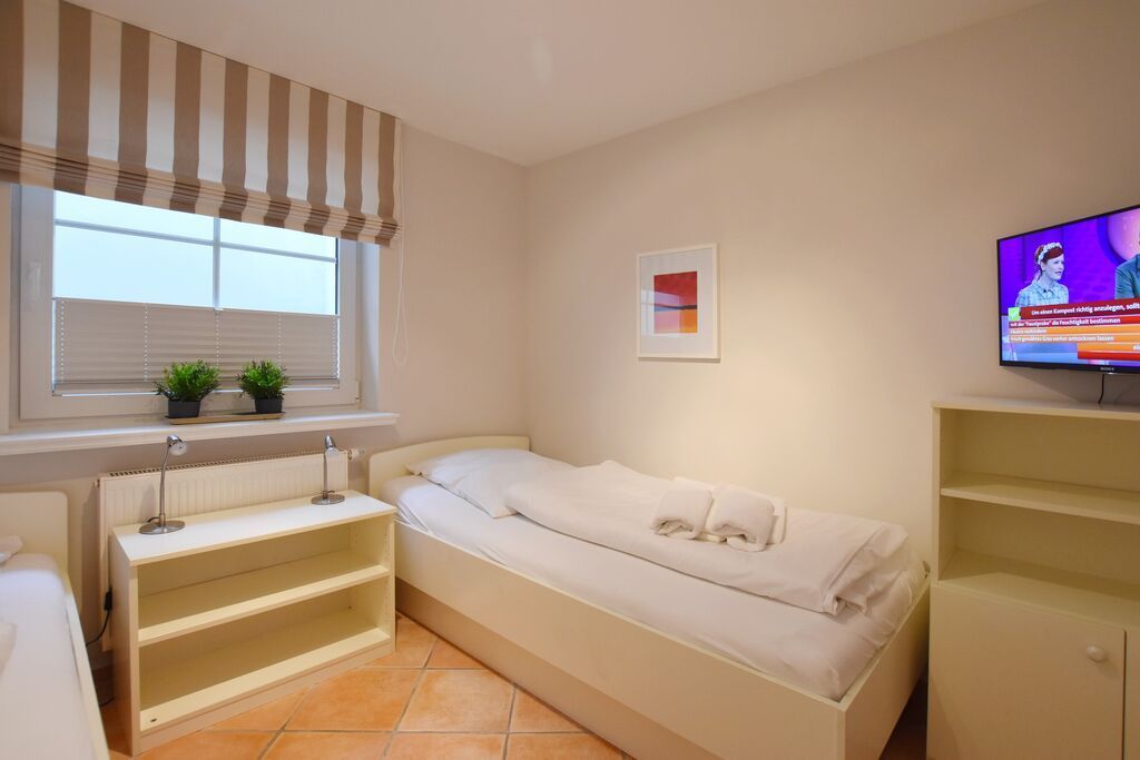 1. Schlafzimmer mit Doppelbett (2x 90x200cm), Kleiderschrak, Kommode, Hocker und TV. 2. Schlafzimmer mit 2 Einzelbetten (je 90x200cm), Kleiderschrank, Kommode und TV.
