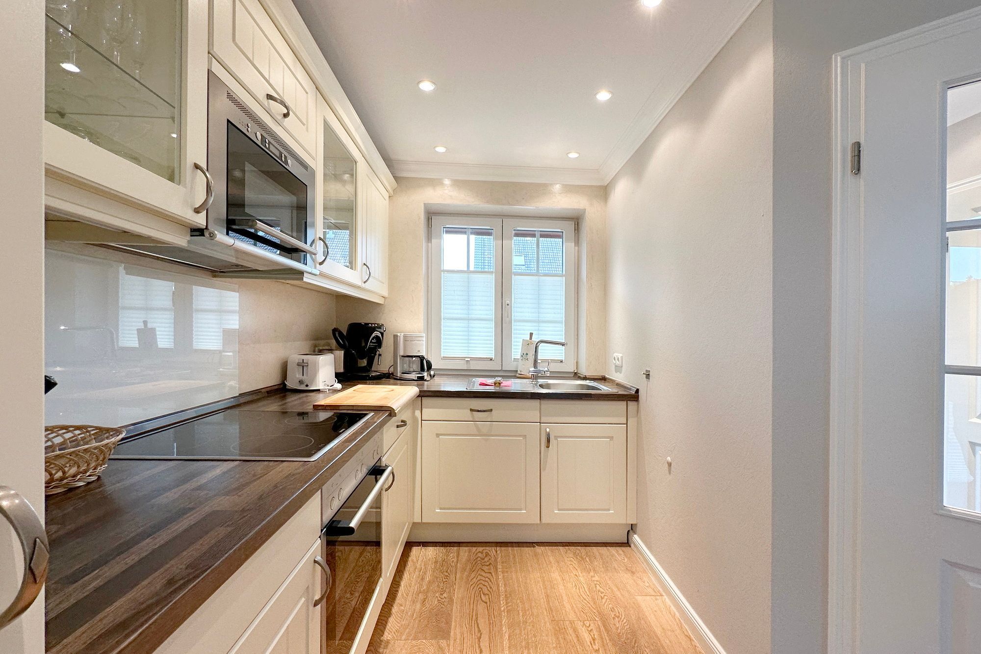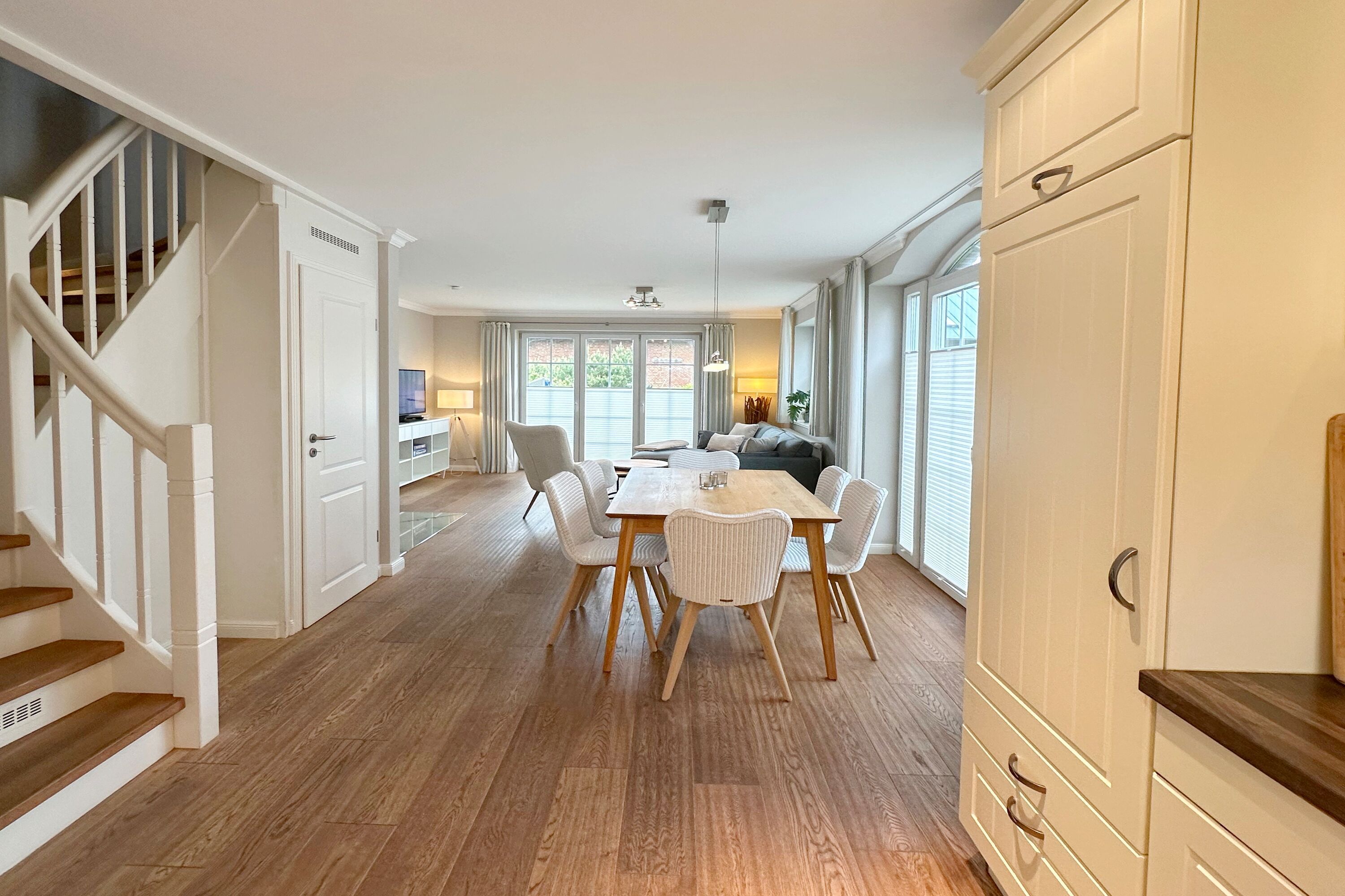 EG :Wohnzimmer mit gemütlicher Sitzgruppe und Kamin , Eßecke, Fernseher, offene gut ausgestattete Küche mit Cerankochfeld, 1 Duschbad