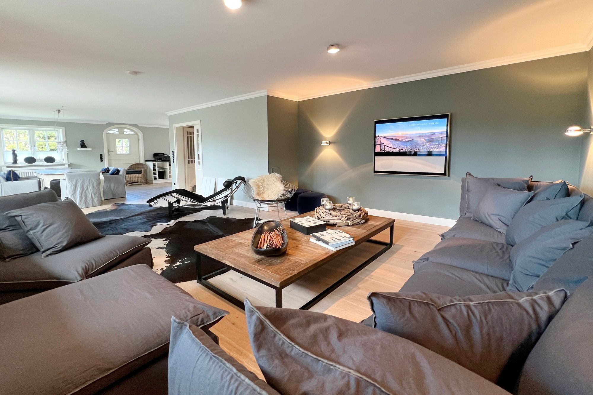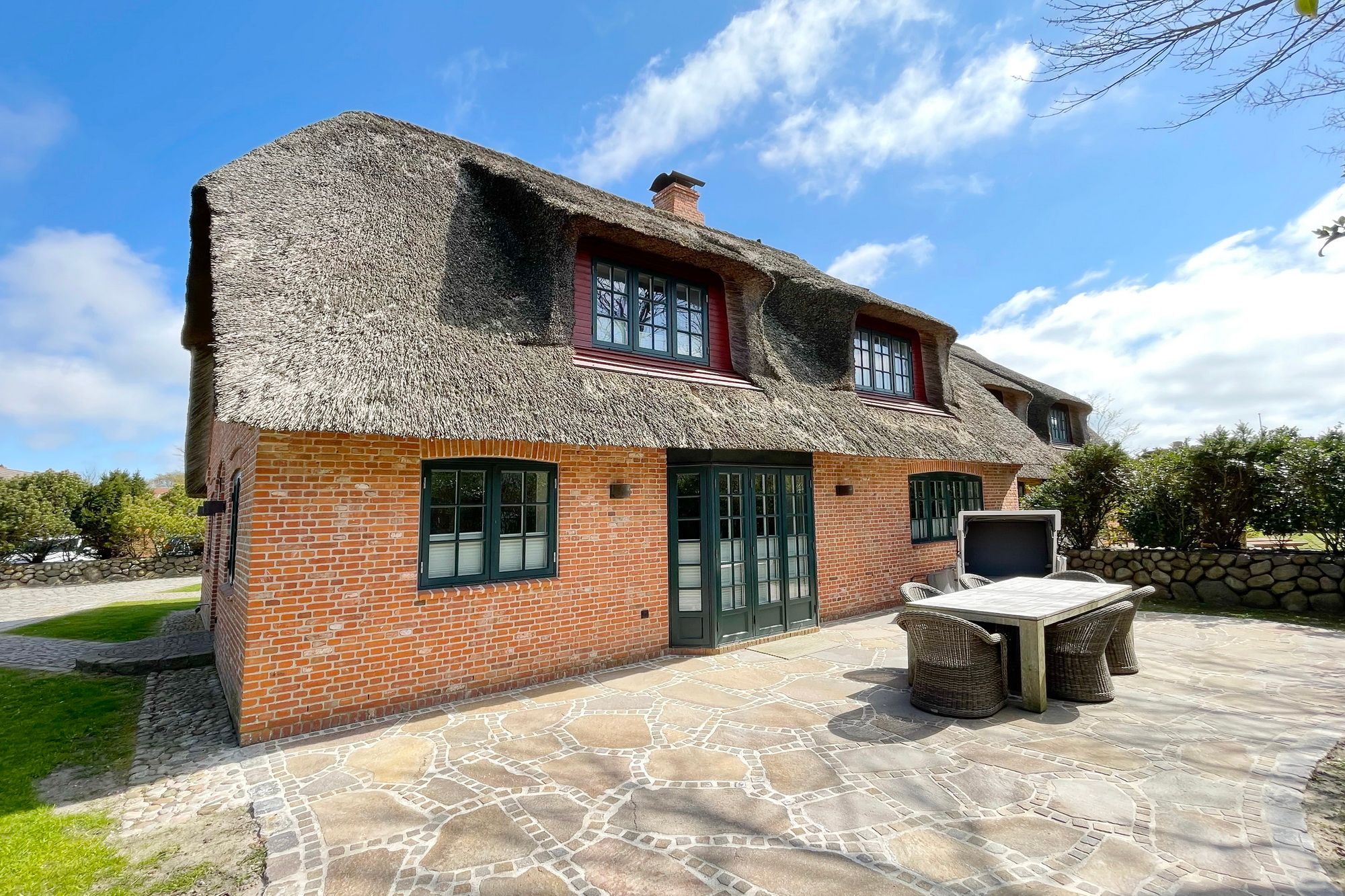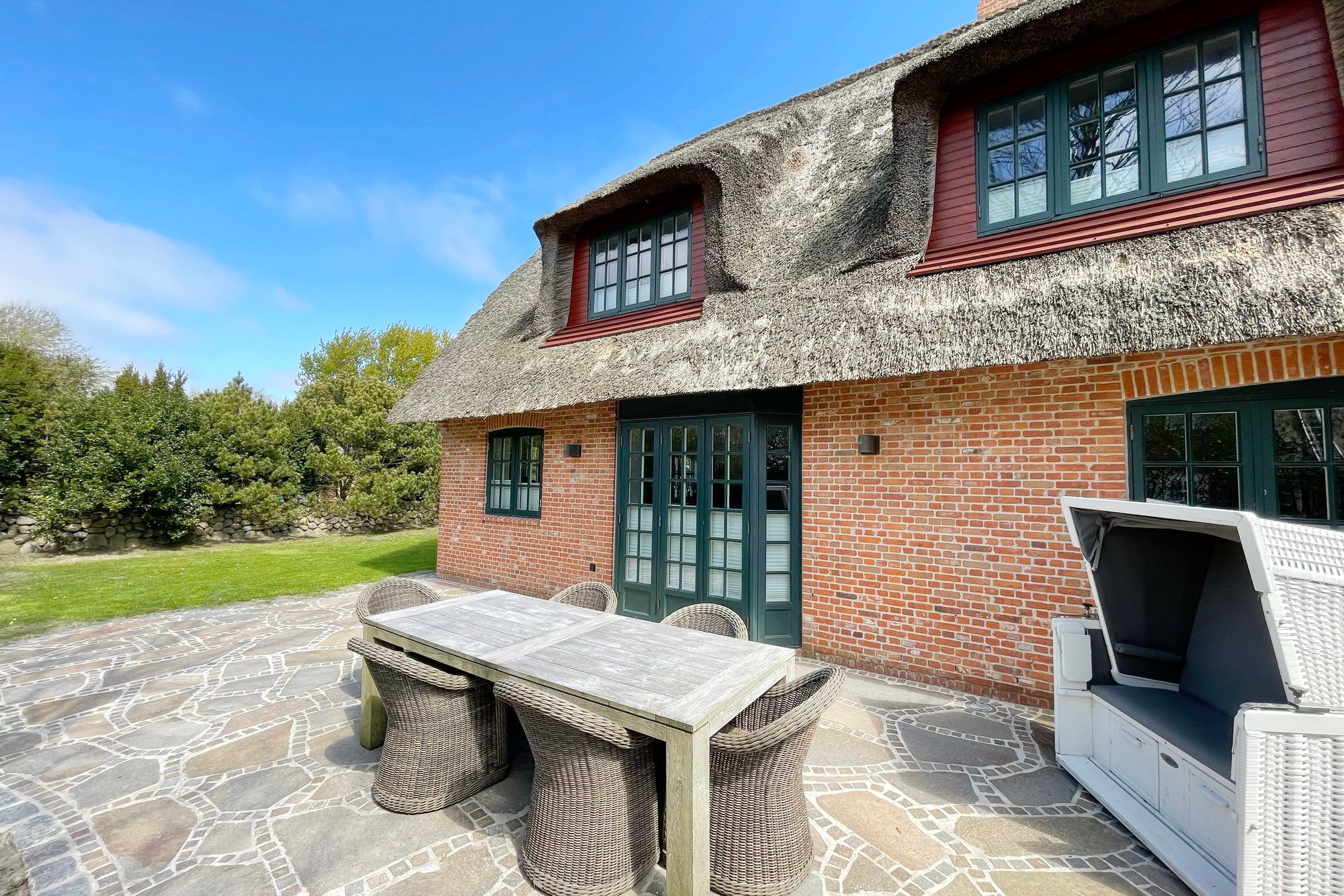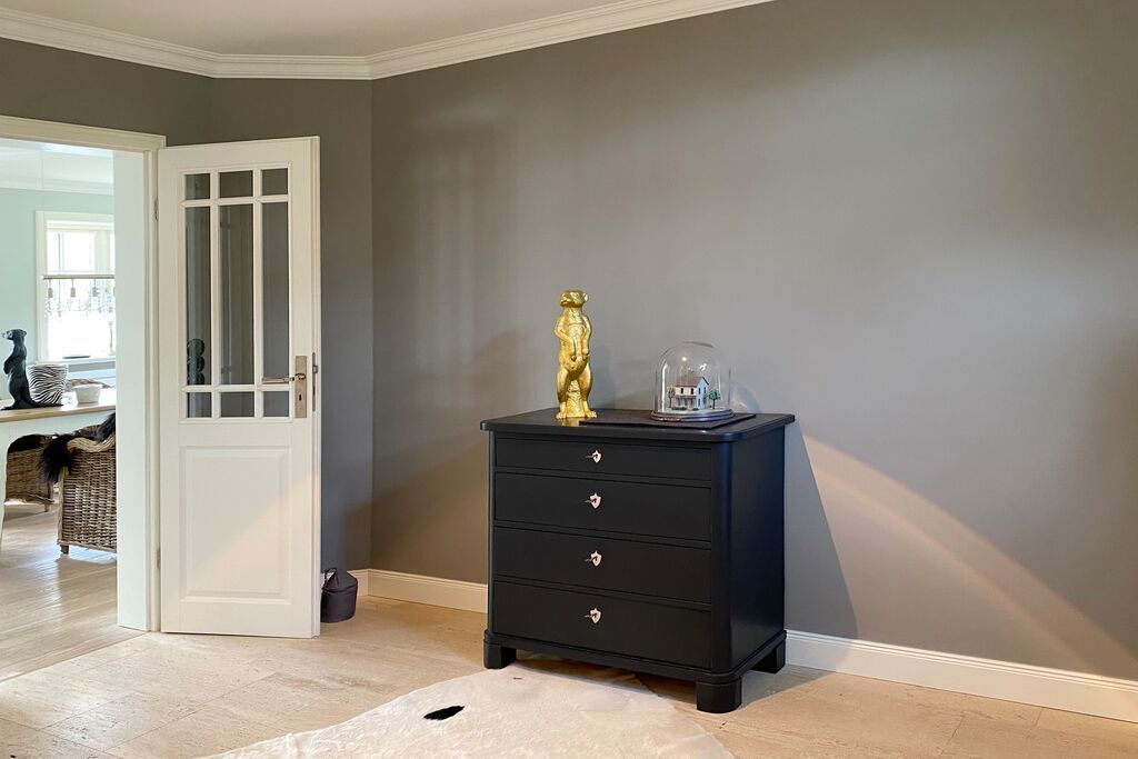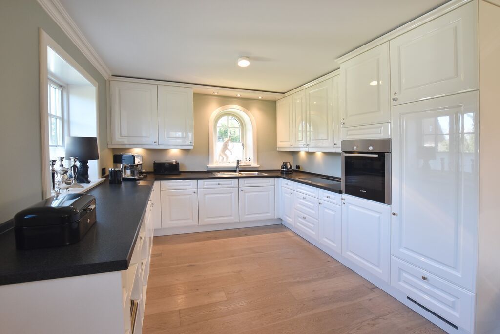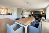 Diese exklusive Luxus-Doppelhaushälfte befindet sich in ruhiger Lage in einer Sackgasse und bietet Platz für 6 Personen. Das Erdgeschoss verfügt über ein großes Wohnzimmer mit Essbereich und einer offenen, erstklassig ausgestatteten Küche. Diese lässt keine Wünsche offen und beinhaltet unter anderem einen Induktionsherd, eine Nespressomaschine und einen Backofen. Des Weiteren befindet sich im Erdgeschoss ein Flur mit Treppenaufgang zum Obergeschoss und ein Gäste-WC. Die Terrasse bietet Ihnen die Möglichkeit, im Freien zu entspannen und ist mit Gartenmöbeln und einem Strandkorb ausgestattet.
