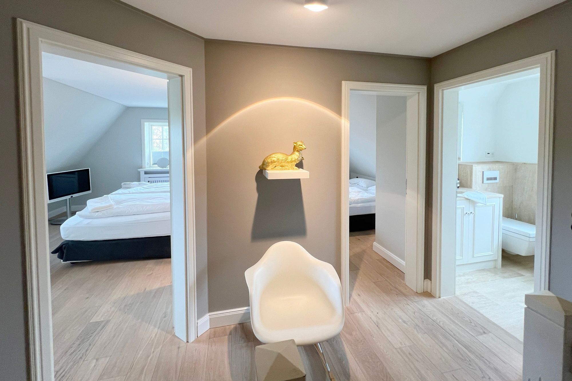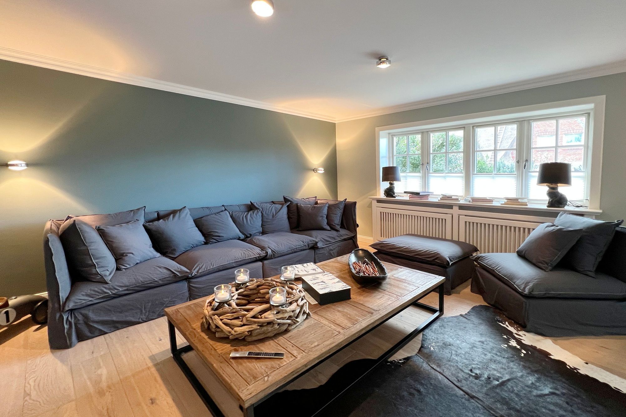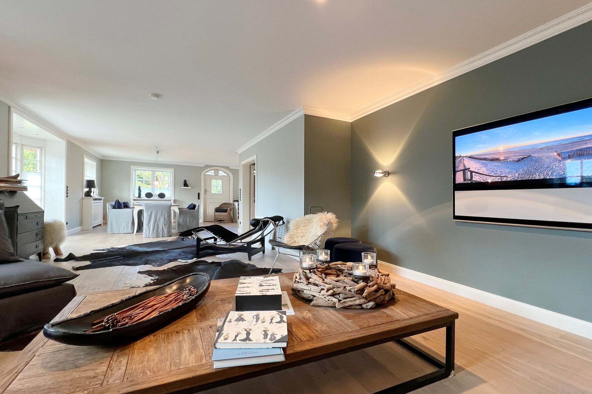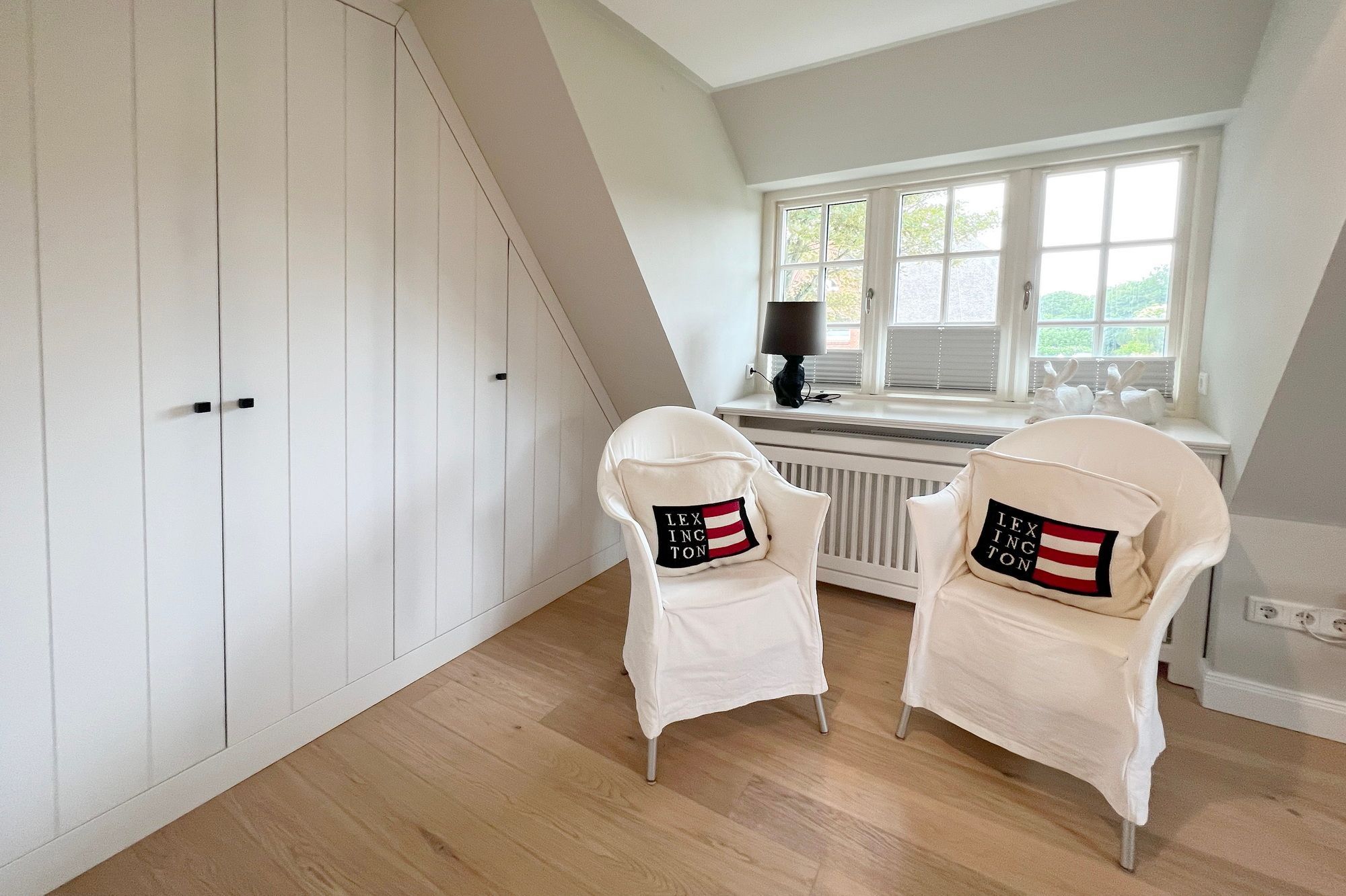 Diese exklusive Luxus-Doppelhaushälfte befindet sich in ruhiger Lage in einer Sackgasse und bietet Platz für 6 Personen. Das Erdgeschoss verfügt über ein großes Wohnzimmer mit Essbereich und einer offenen, erstklassig ausgestatteten Küche. Diese lässt keine Wünsche offen und beinhaltet unter anderem einen Induktionsherd, eine Nespressomaschine und einen Backofen. Des Weiteren befindet sich im Erdgeschoss ein Flur mit Treppenaufgang zum Obergeschoss und ein Gäste-WC. Die Terrasse bietet Ihnen die Möglichkeit, im Freien zu entspannen und ist mit Gartenmöbeln und einem Strandkorb ausgestattet.