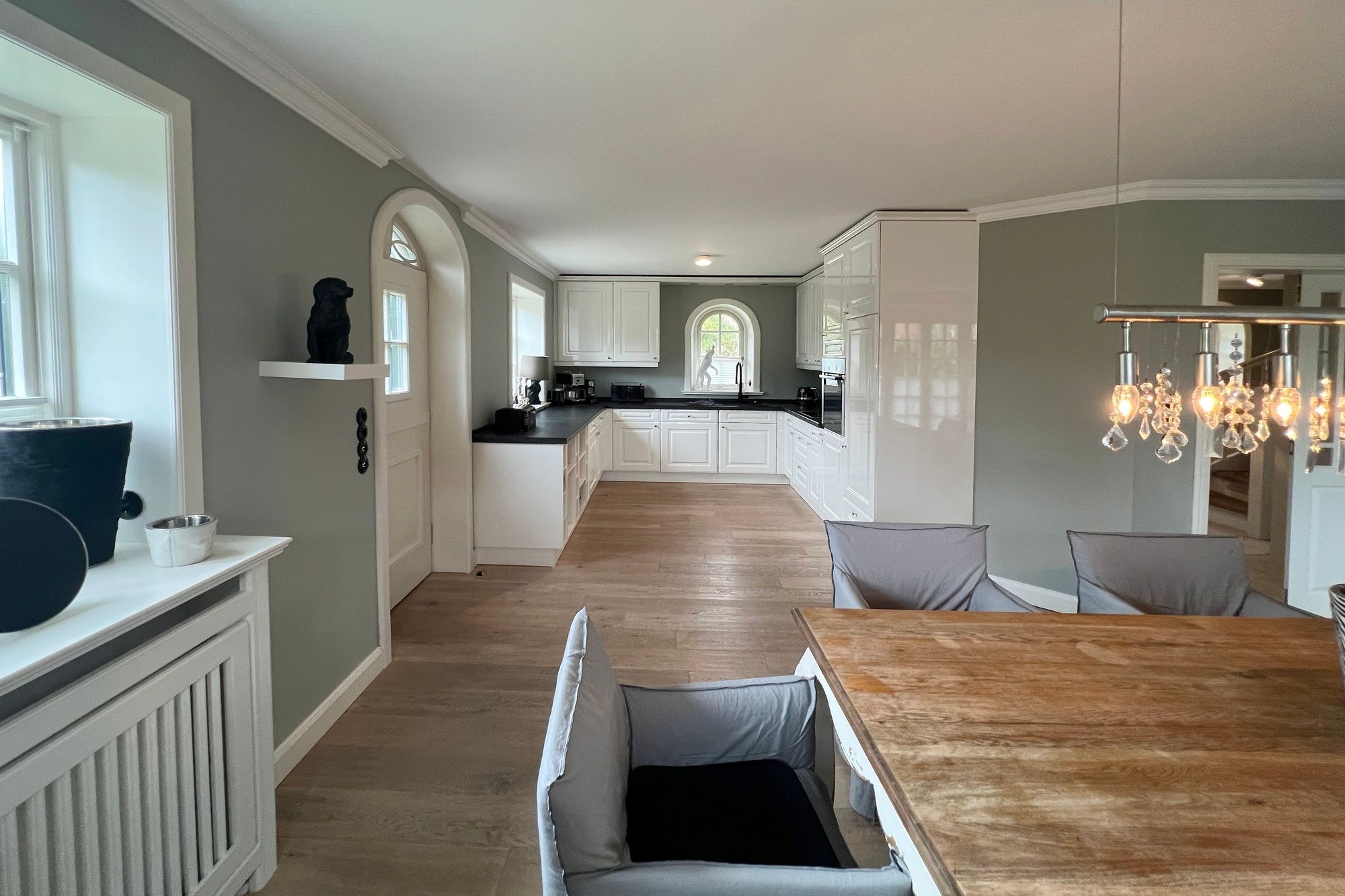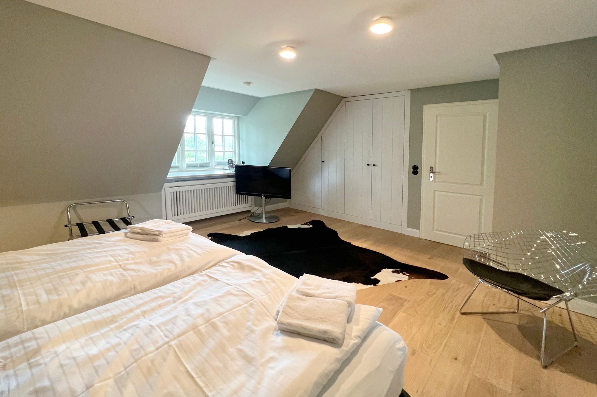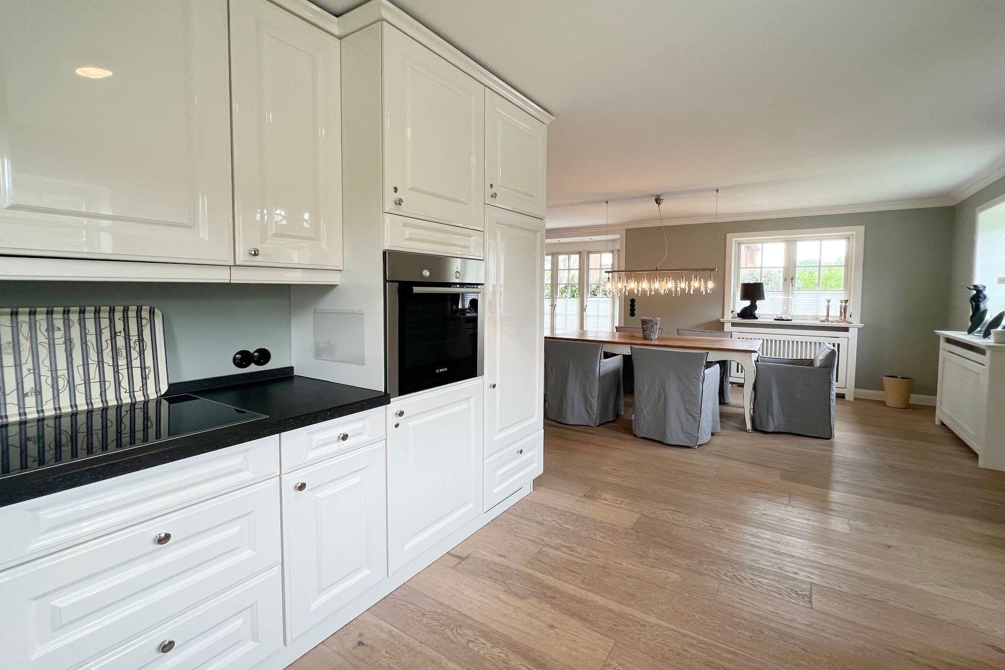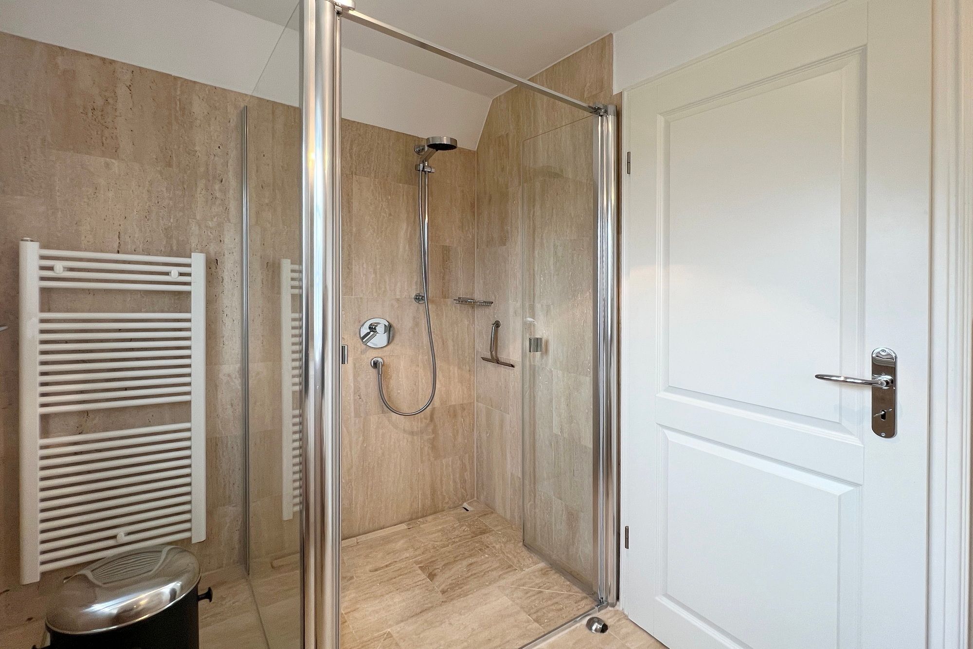 Diese exklusive Luxus-Doppelhaushälfte befindet sich in ruhiger Lage in einer Sackgasse und bietet Platz für 6 Personen. Das Erdgeschoss verfügt über ein großes Wohnzimmer mit Essbereich und einer offenen, erstklassig ausgestatteten Küche. Diese lässt keine Wünsche offen und beinhaltet unter anderem einen Induktionsherd, eine Nespressomaschine und einen Backofen. Des Weiteren befindet sich im Erdgeschoss ein Flur mit Treppenaufgang zum Obergeschoss und ein Gäste-WC. Die Terrasse bietet Ihnen die Möglichkeit, im Freien zu entspannen und ist mit Gartenmöbeln und einem Strandkorb ausgestattet.