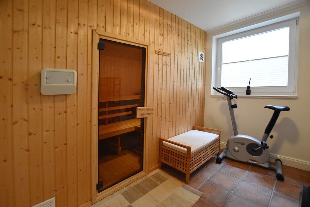 Die Sauna und der Kamin laden nicht nur in der kalten Jahreszeit zum Relaxen ein. Ein PKW-Stellplatz ( bzw. 2 hintereinander ) und eine Garage für Fahrräder befinden sich auf dem Grundstück.