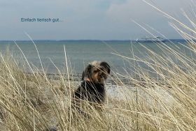 Freundliche, stubenreine Hunde sind gern gesehene Gäste; sie müssen angemeldet sein und dürfen nicht allein in der Unterkunft bleiben. Aufschlag zur Endreinigung einmalig € 30,00/Hund. Andere Haustiere sind nicht gestattet. In dieser Wohnung dürfen Sie max. 3 kleine Hunde begleiten (bitte beachten Sie den Zugang über eine Außentreppe). Zwei Hundestrände, an der Steilküste bzw. neben dem Surfstrand, sind bequem zu Fuß zu erreichen (ca. 2 und 4 km von Ihrer Wohnung entfernt). Nur 100 m von uns entfernt beginnt der beliebte Wanderweg für die morgendliche Gassi-Runde zwischen Feld und Wiesen.