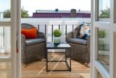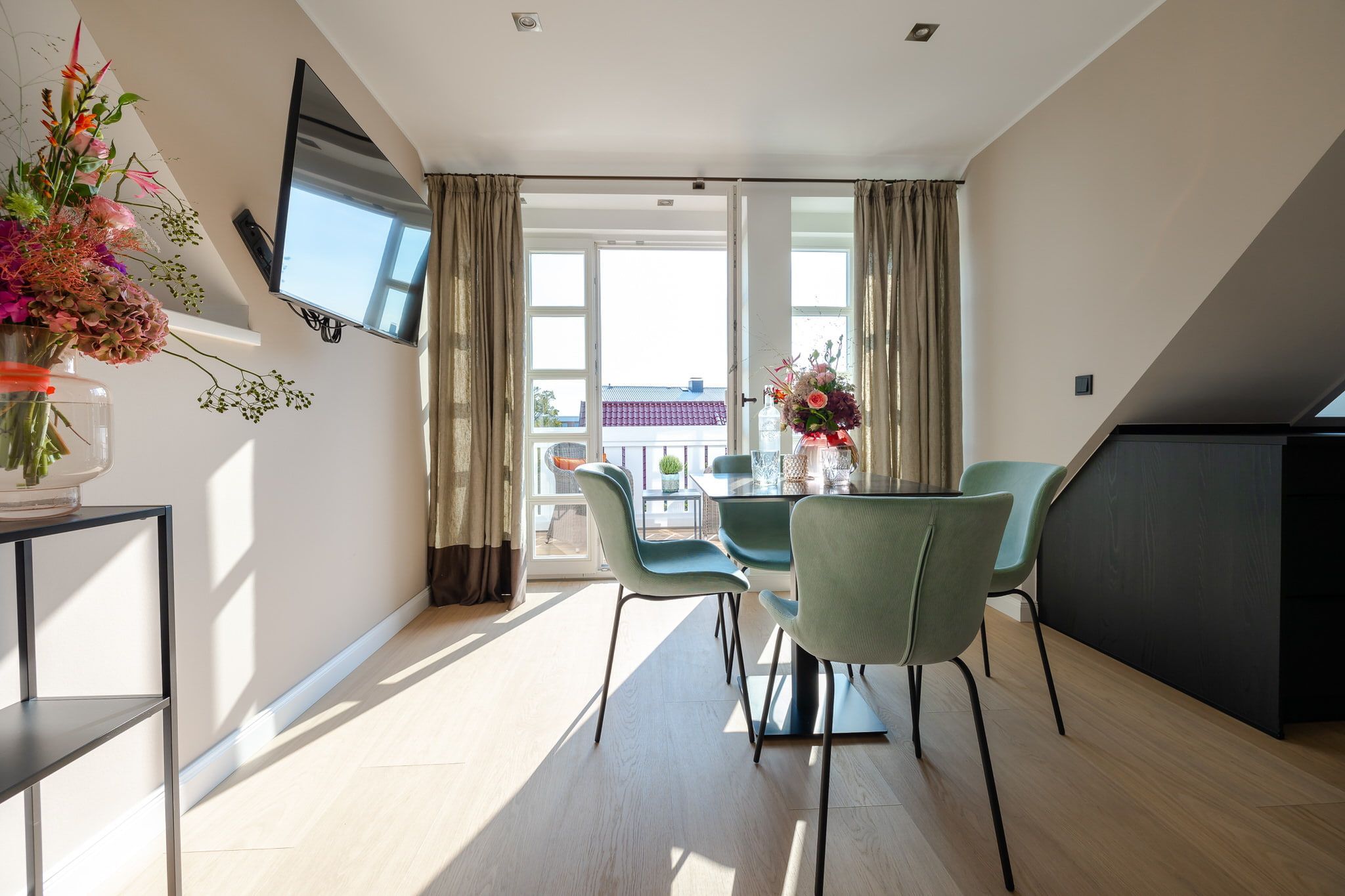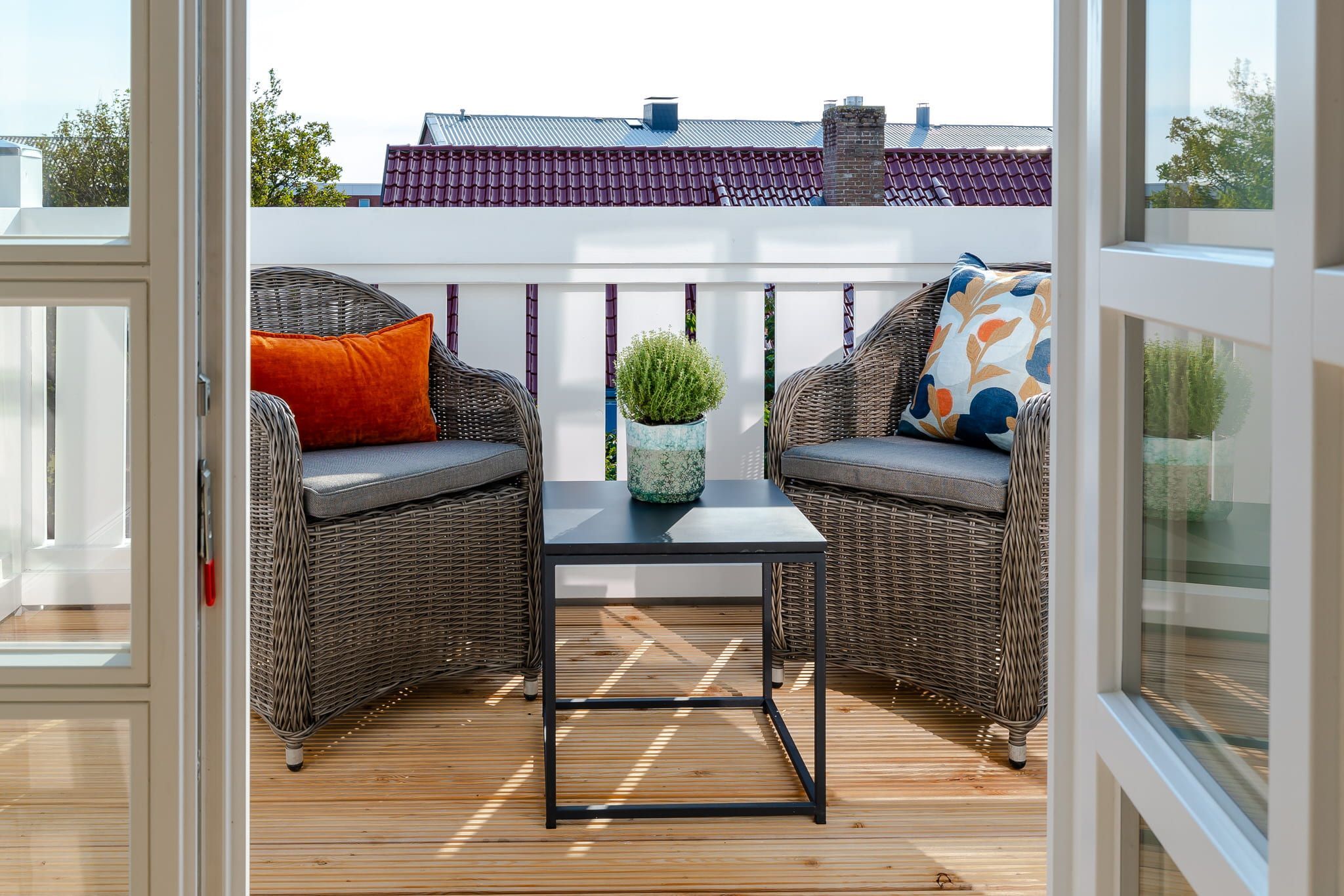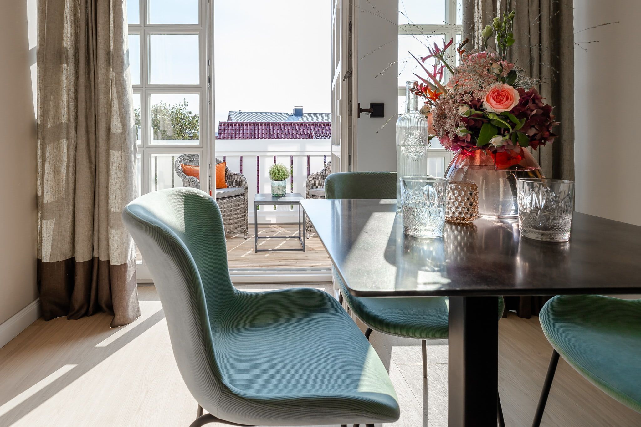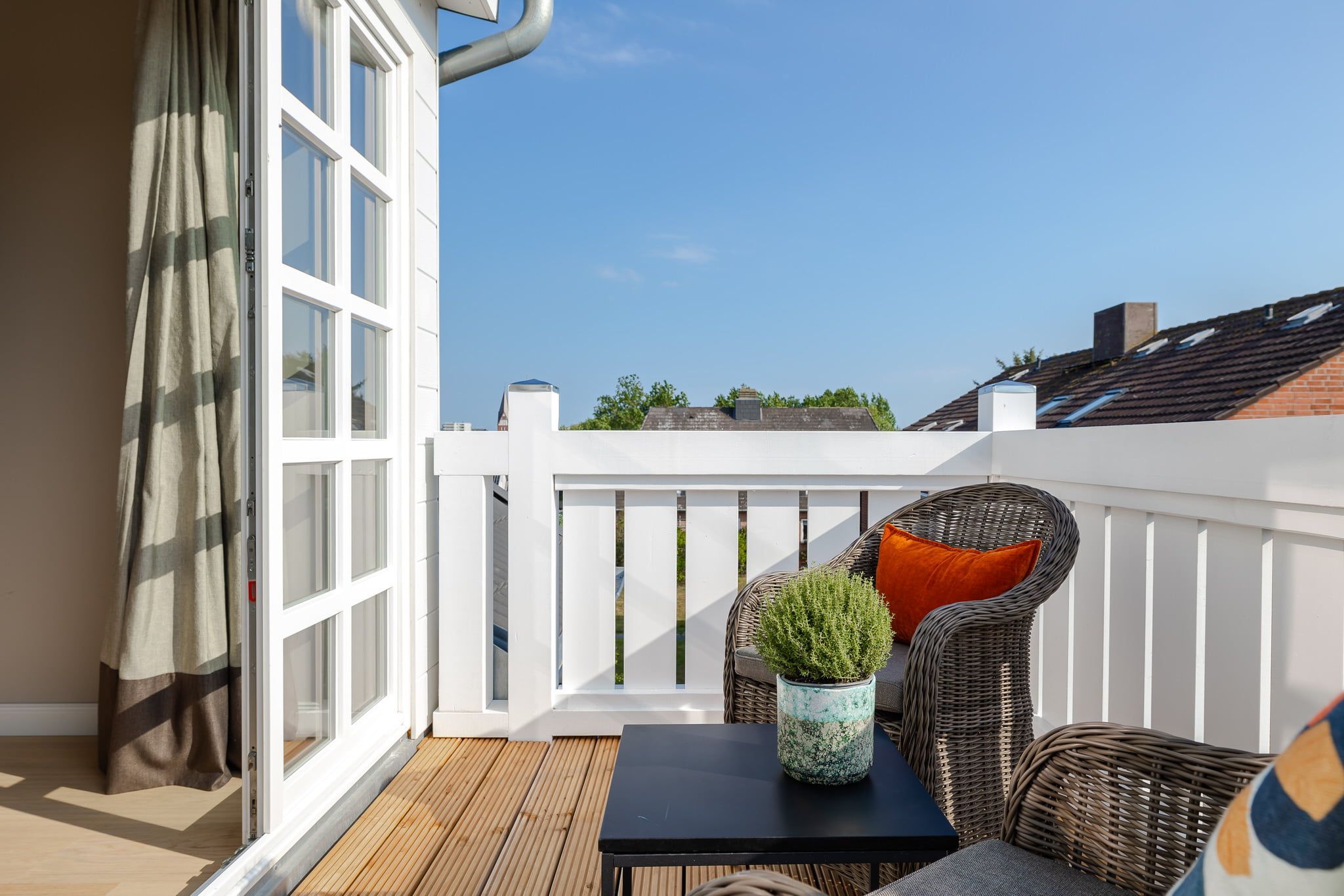 Die 3-Zimmer Maisonette Ferienwohnung ist eine kleine Wohlfühl-Oase für sich: hohe Decken, lichtdurchflutete Räume und eine stylische, moderne Ausstattung lässt Ihren Aufenthalt zu etwas ganz Besonderem werden. Der geräumige Wohn-Essbereich ist mit einem Schlafsofa ausgestattet und bietet Zugang zum Balkon in Richtung Osten der Insel. Unser Tipp: Gönnen Sie sich Ihren Kaffee am Morgen im Lichte des Sonnenaufgangs.