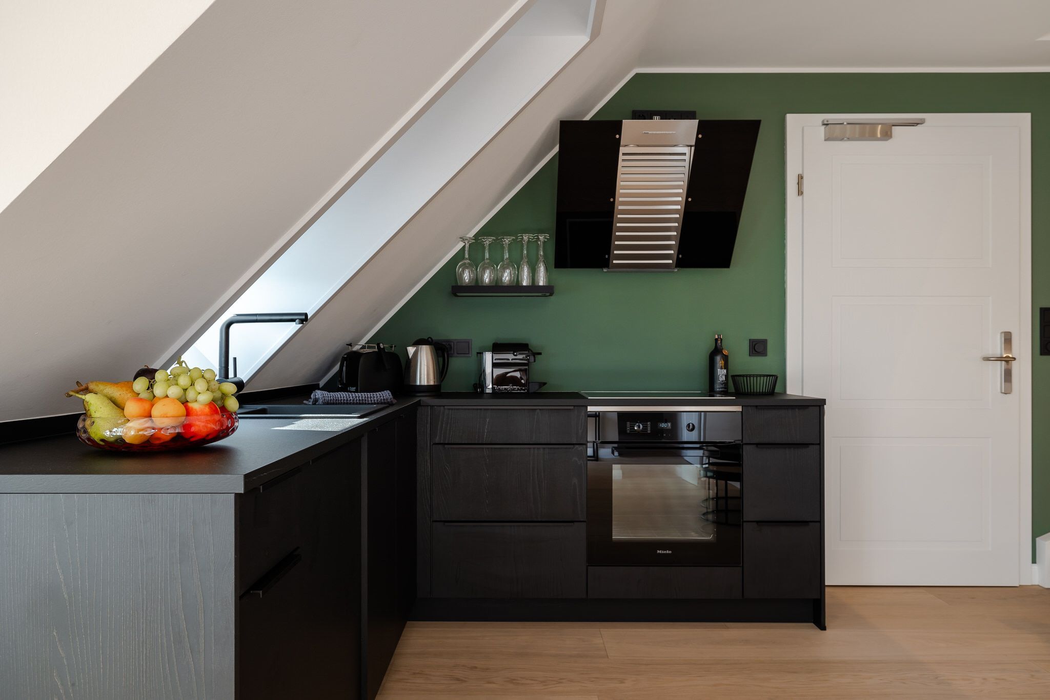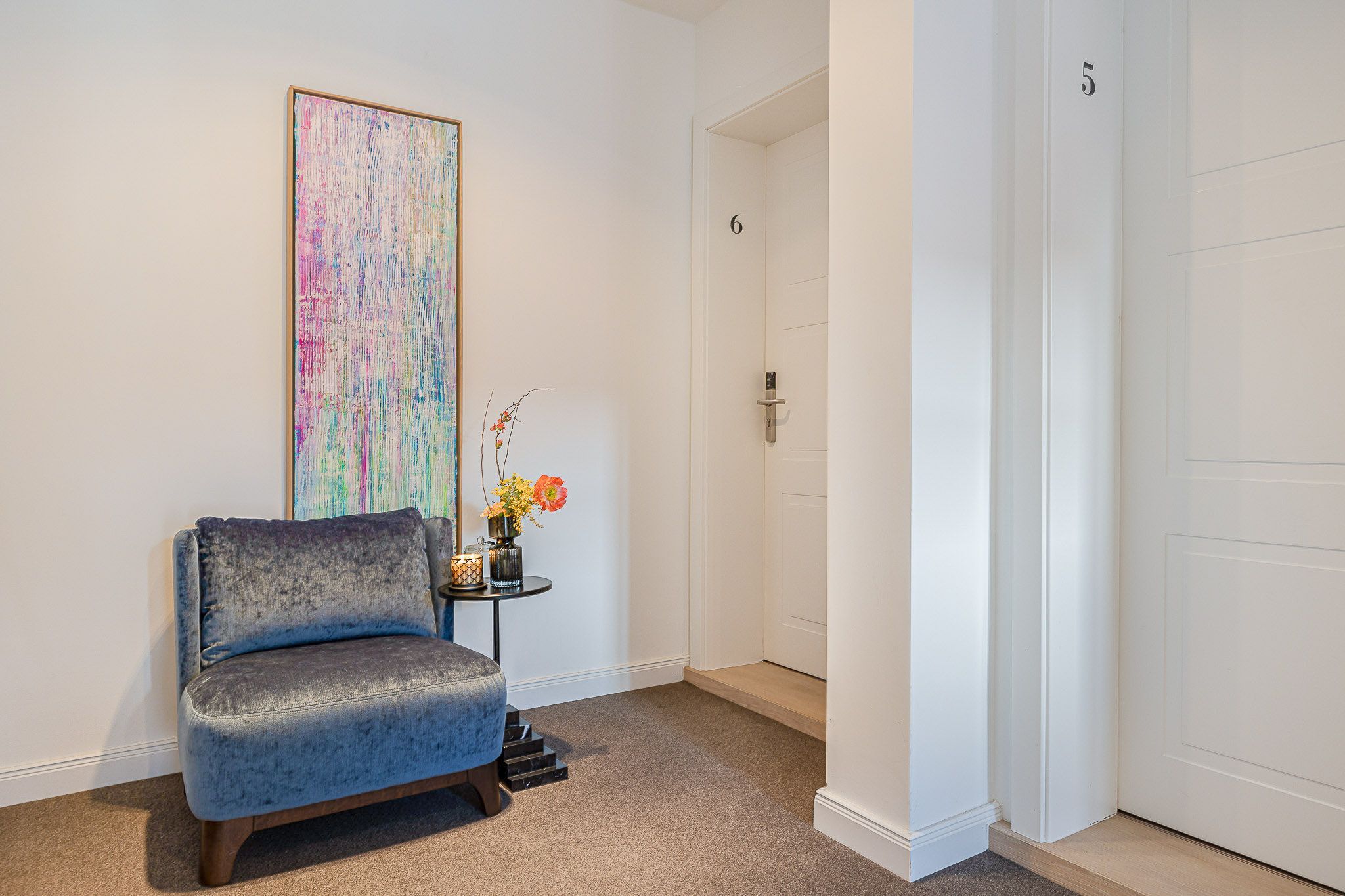Die Küche ist hochwertig eingerichtet und vollends ausgestattet mit Top-Markenherstellern wie Gaggenau und Miele. Für die wohlverdiente Entspannung sorgt das gemütliche Boxspringbett im Schlafzimmer sowie die großzügige Regendusche im modernen Badezimmer. Ein kleines Starterpaket für die Küche und die ersten Wohlfühlstunden im Bad gibts inklusive.