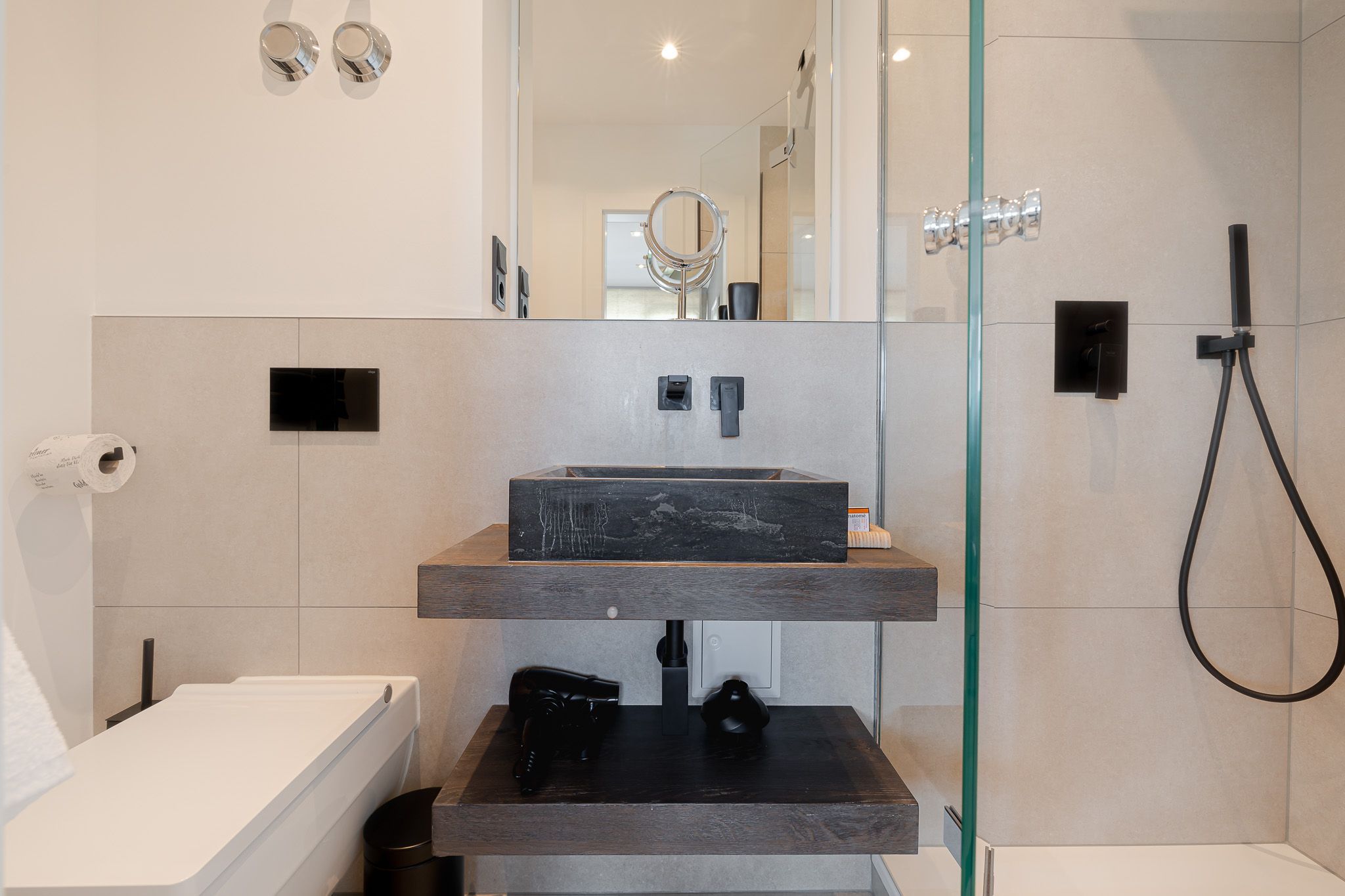 Es geht noch komfortabler. Profitieren Sie als Gäste unseres Hauses von der kostenfreien Nutzung unseres gemeinschaftlichen Saunabereichs inklusive Liegen und kleinem Fitnessraum mit Crosstrainer, Spiegel und Peloton®-Bike. So können Sie sich auch im Urlaub fit halten und beim anschließenden Saunagang Ihren persönlichen Entspannungsmoment erleben.
