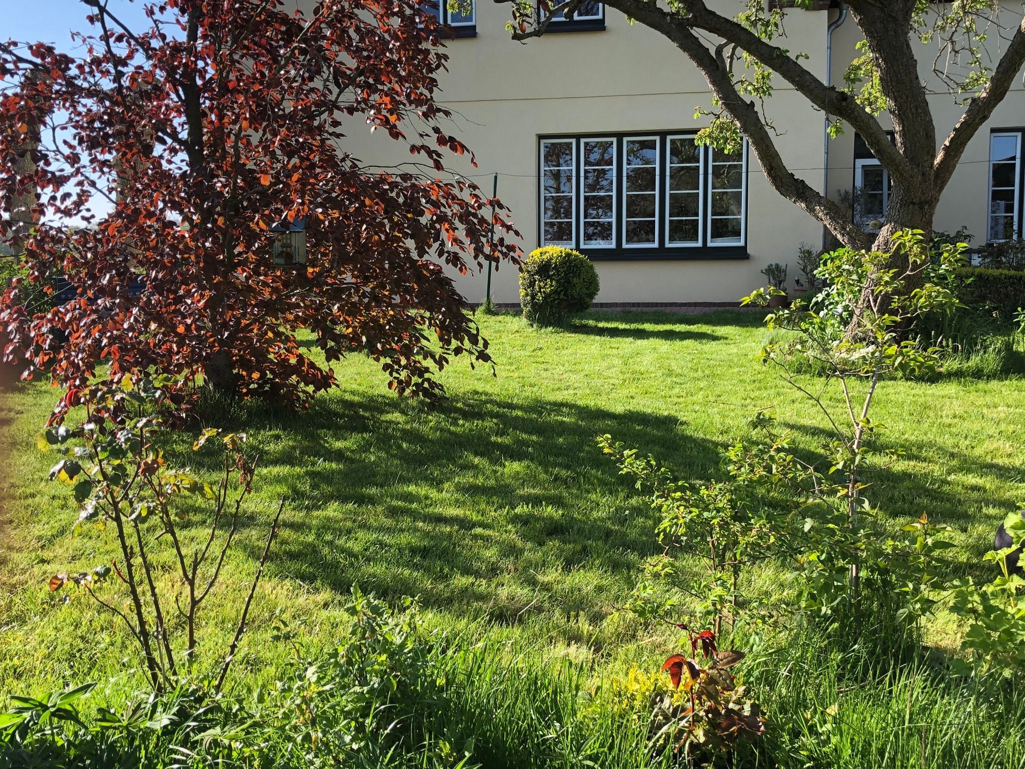 Vor dem Haupthaus findet ihr auch eine sonnige Sitzgelegenheit, die zu einem ausgedehnten Brunch,