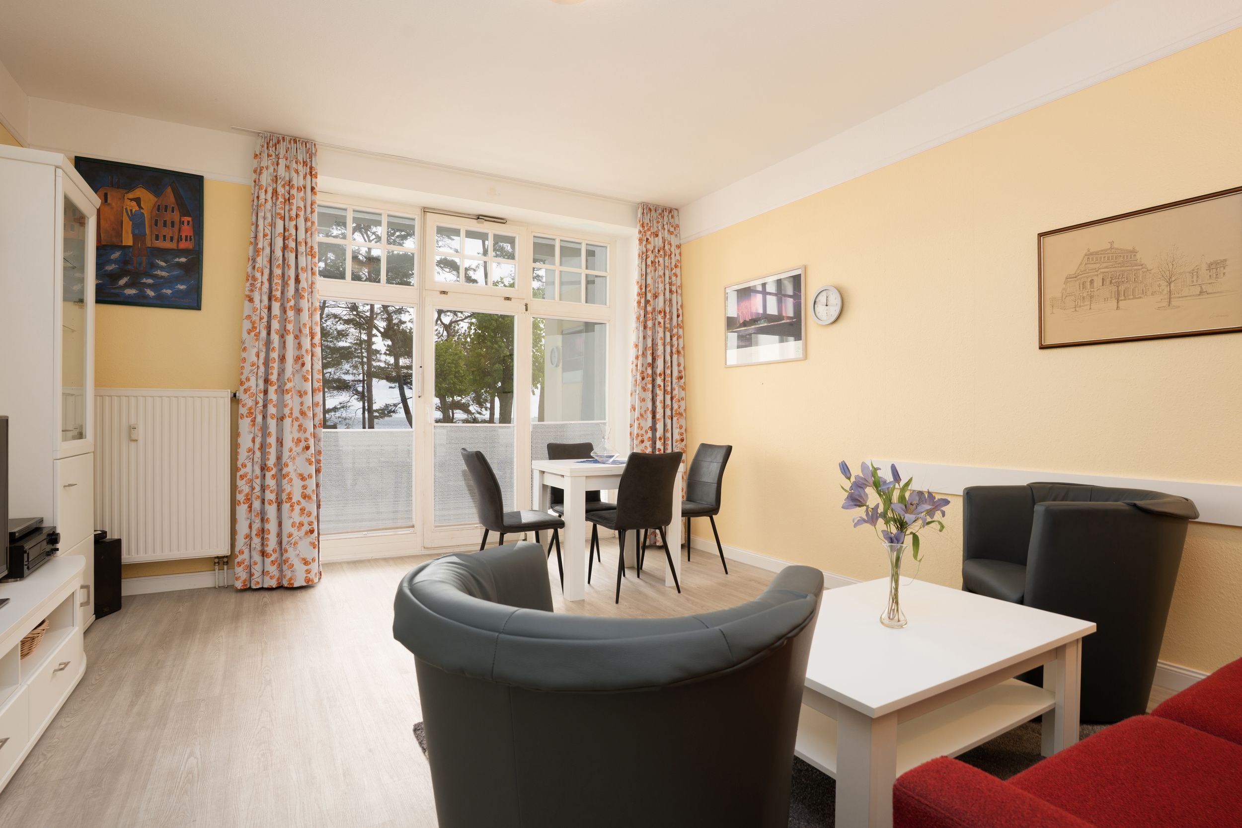 Gebaut im Stil der Bäderarchitektur geniessen Sie den Blick auf die Ostsee und die Strandpromenade. In unserem Apartment 3 darf Ihr Hund mit Ihnen zusammen Urlaub machen.