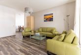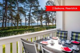 Vom Wohnzimmer aus erreichen Sie die beiden möblierten Balkone mit traumhaften Blick auf die Ostsee. Im Wohnbereich befindet sich ein Schrankbett, was mit wenigen Handgriffen zu einem vollwertigen Doppelbett ausgeklappt werden kann. Auf der Couch können Sie entspannt eine Urlaubstag vor dem Flat TV ausklingen lassen.