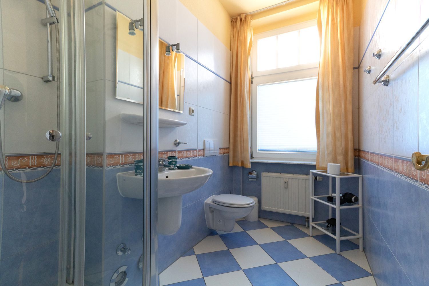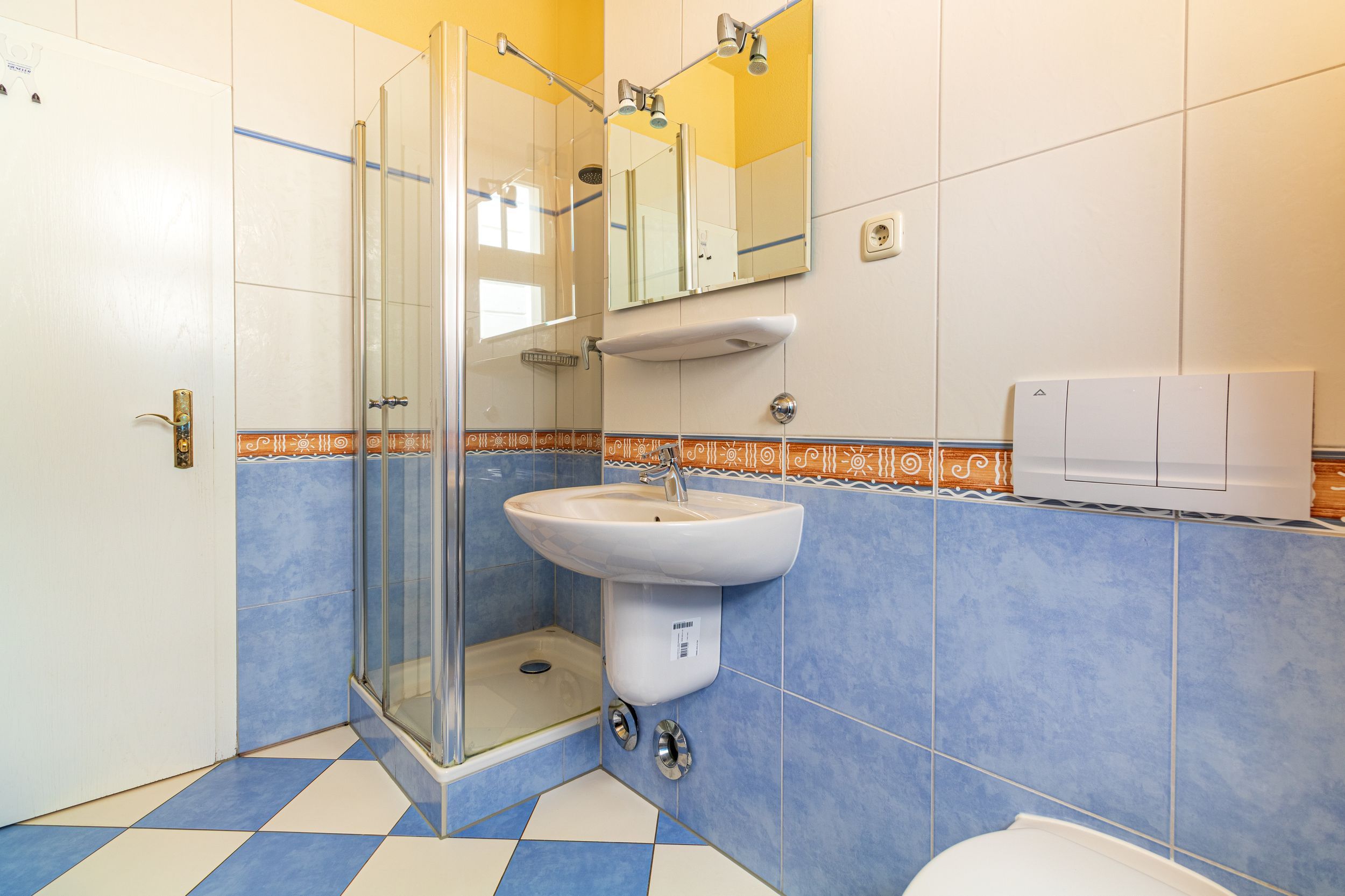 Ein Tageslichtbad mit Dusche vervollständigt die Einrichtung der Ferienwohnung.