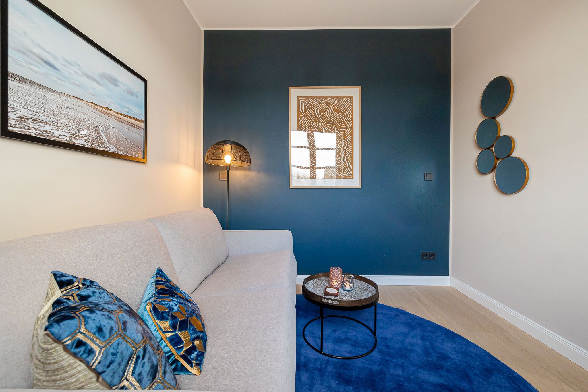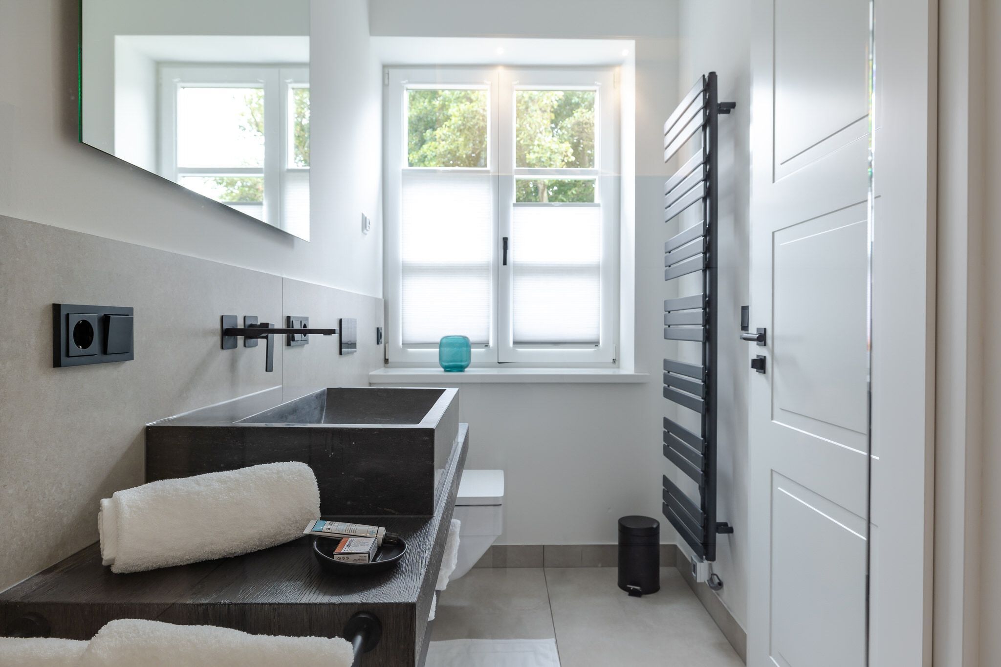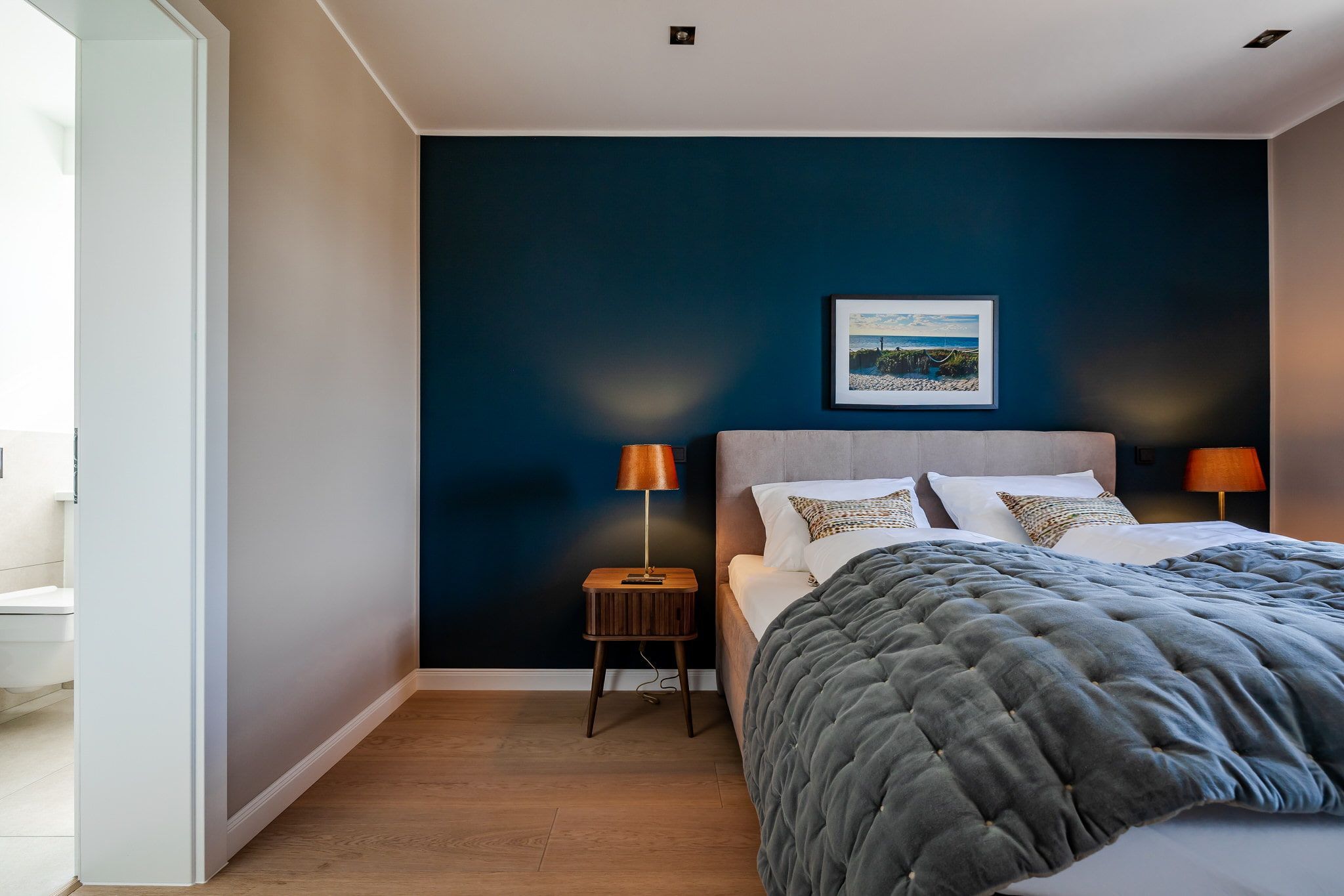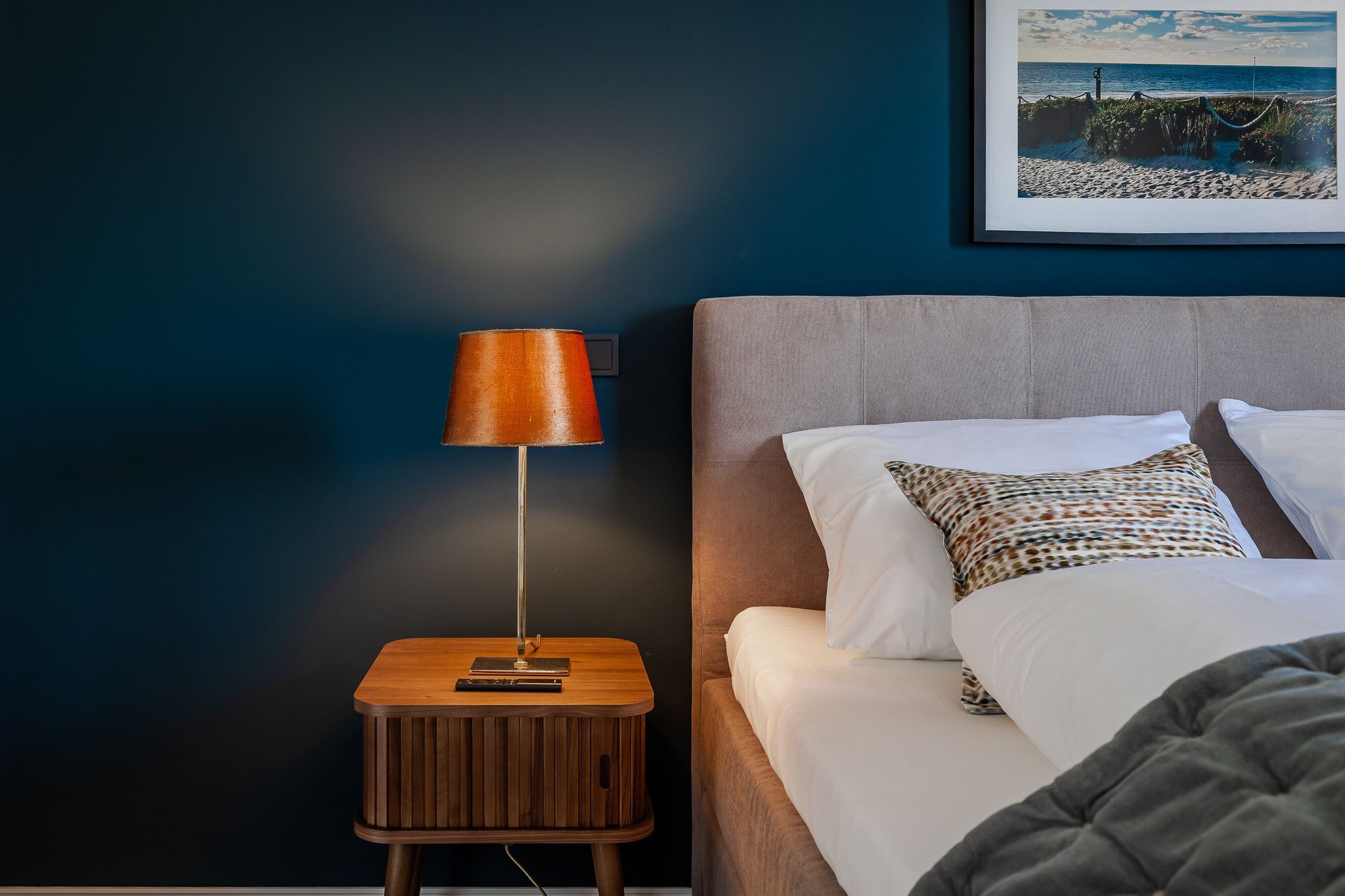 Das 3-Zimmer Apartment “Living Lorens No. 7” überzeugt nicht nur mit einer stylisch, modernen Ausstattung, auch die hohen Decken und die lichtdurchfluteten Räume machen diese Ferienwohnung zu einem Wohlfühlort. Beim Betreten befinden Sie sich direkt in dem offenen und geräumigen Wohn- und Essbereich inklusive eines Schlafsofas. Kochen macht in unserem Apartment garantiert doppelt Spaß, da die Küche mit Geräten von erstklassigen Markenherstellern, wie Gaggenau und Miele ausgestattet ist. Vom Wohn- und Essbereich gelangen Sie direkt auf den charmanten Balkon, welcher nach Westen ausgerichtet ist. Hier können Sie an warmen Sommernächten den Sonnenuntergang bei einem gemütlichen Glas Wein mit Ihren Liebsten genießen. Für erholsame Nächte sorgt das besondere COCO-MAT Boxspringbett, welches in dem größeren Schlafzimmer zu finden ist. Im zweiten kleineren Schlafzimmer gibt es ein hochwertiges Schlafsofa in Boxspringbett Qualität. Das Highlight im Badezimmer ist sicherlich die Regendusche sowie die moderne Ausstattung. Zudem erhalten Sie bei Ihrer Anreise ein Starterpaket und eine Erstausstattung für Badezimmer und Küche.