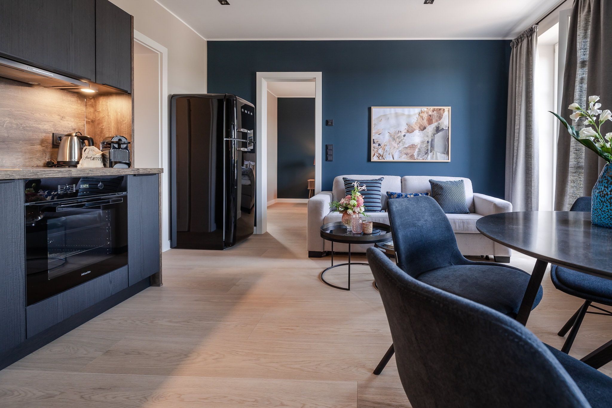 Das 3-Zimmer Apartment Living Lorens No. 7 überzeugt nicht nur mit einer stylisch, modernen Ausstattung, auch die hohen Decken und die lichtdurchfluteten Räume machen diese Ferienwohnung zu einem Wohlfühlort. Beim Betreten befinden Sie sich direkt in dem offenen und geräumigen Wohn- und Essbereich inklusive eines Schlafsofas. Kochen macht in unserem Apartment garantiert doppelt Spaß, da die Küche mit Geräten von erstklassigen Markenherstellern, wie Gaggenau und Miele ausgestattet ist. Vom Wohn- und Essbereich gelangen Sie direkt auf den charmanten Balkon, welcher nach Westen ausgerichtet ist. Hier können Sie an warmen Sommernächten den Sonnenuntergang bei einem gemütlichen Glas Wein mit Ihren Liebsten genießen. Für erholsame Nächte sorgt das besondere COCO-MAT Boxspringbett, welches in dem größeren Schlafzimmer zu finden ist. Im zweiten kleineren Schlafzimmer gibt es ein hochwertiges Schlafsofa in Boxspringbett Qualität. Das Highlight im Badezimmer ist sicherlich die Regendusche sowie die moderne Ausstattung. Zudem erhalten Sie bei Ihrer Anreise ein Starterpaket und eine Erstausstattung für Badezimmer und Küche.