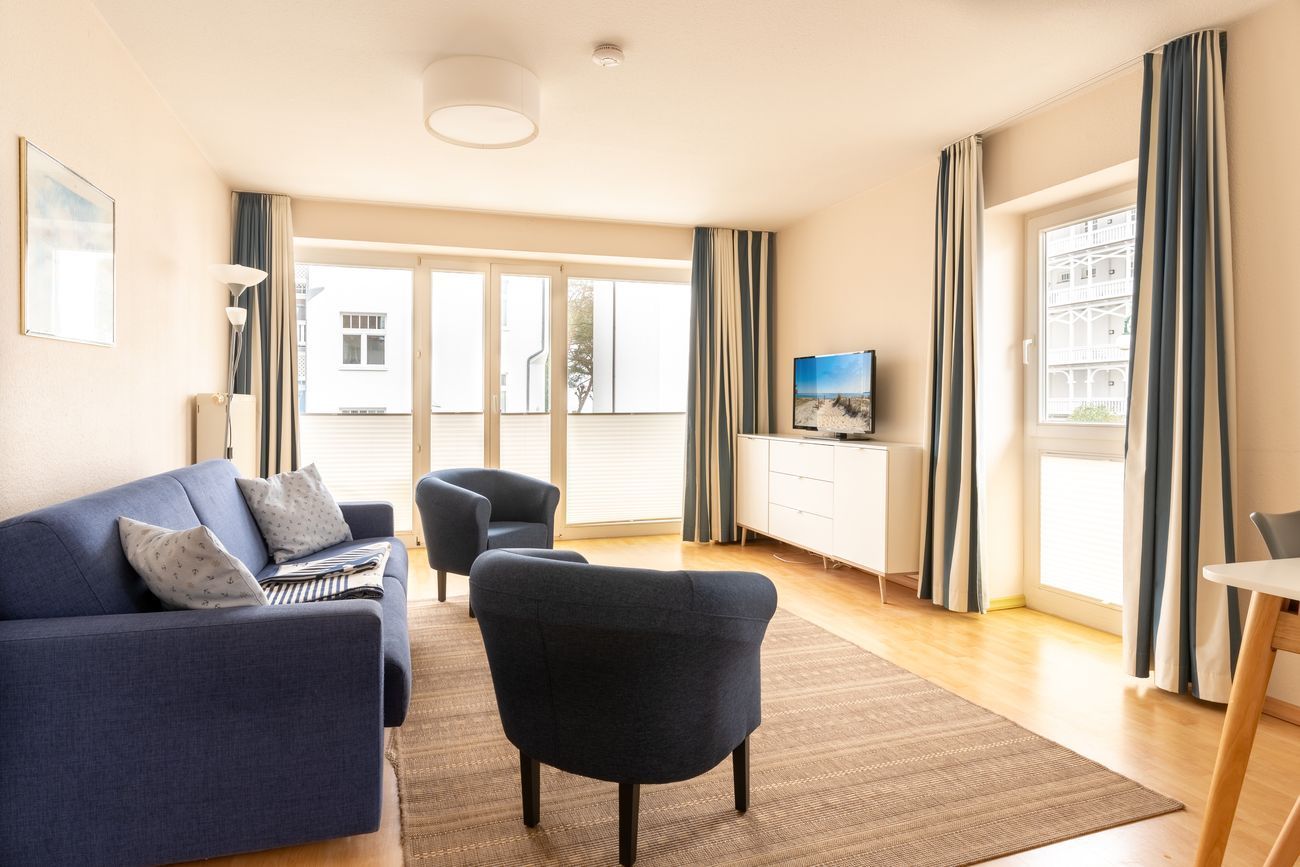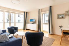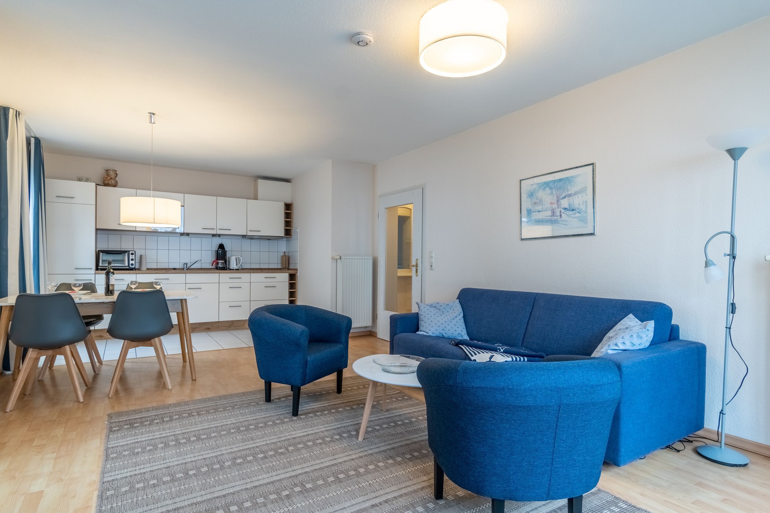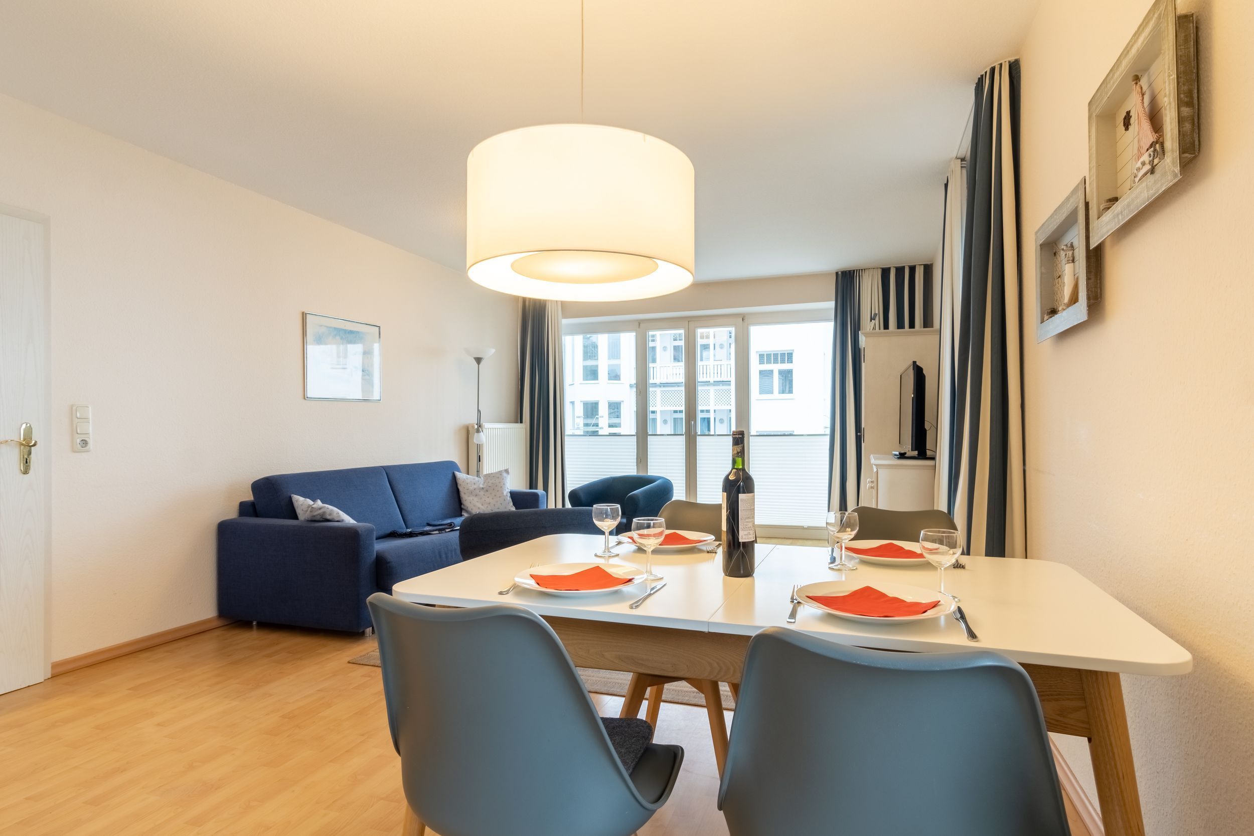 Ihr Apartment besteht aus einem Wohn-/Essbereich mit Küchenzeile, Schlafzimmer und Duschbad bietet auf 52 qm Platz für bis zu 4 Personen.