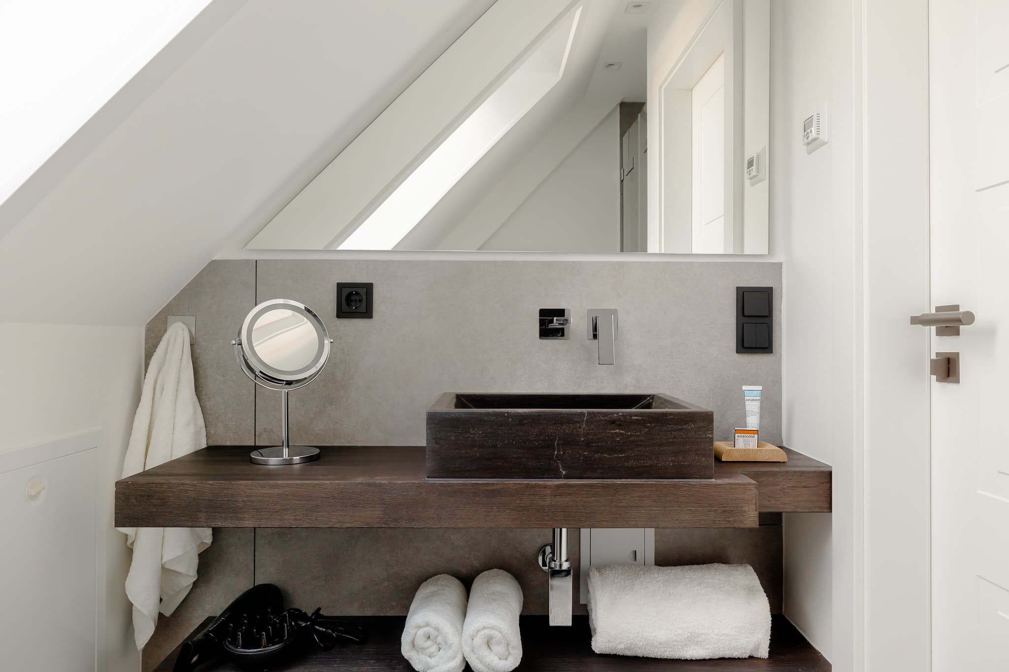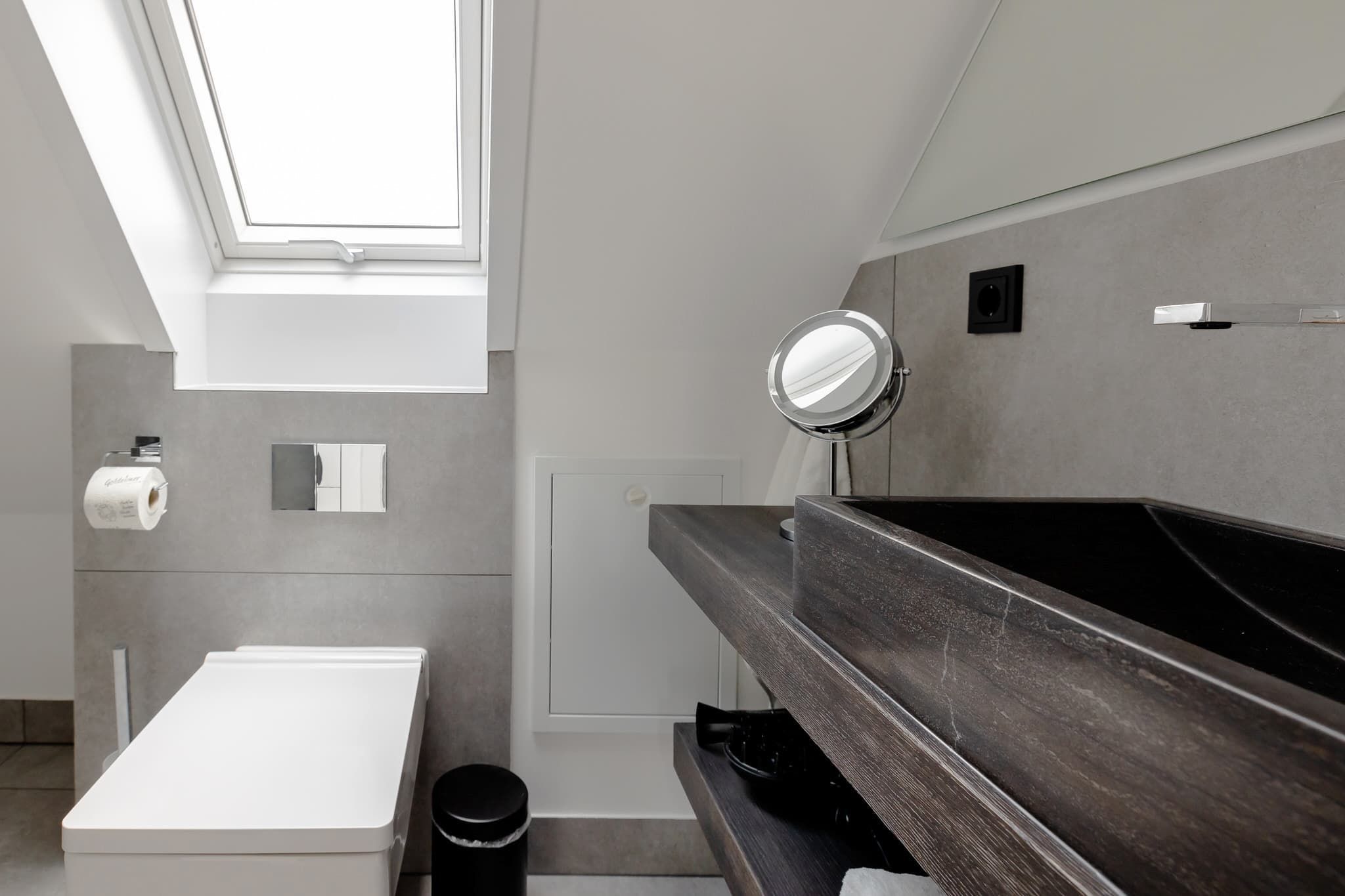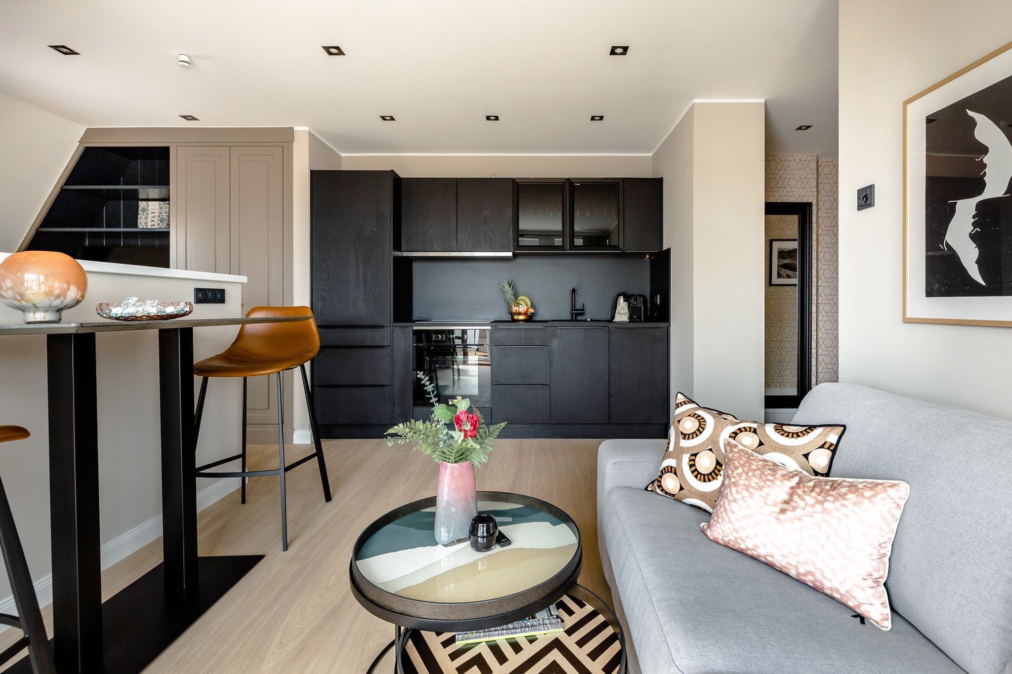 Das 38 qm große und renovierte Apartment lädt zu einem Wohlfühlurlaub ein: lichtdurchflutete Räume, hohe Decken und modernes Design spiegeln den Stil der Wohnung wider. Eines der Highlights ist der charmante Balkon, von dem Sie den Sonnenaufgang in Westerland beobachten können. Im Schlafzimmer erwartet Sie ein hochwertiges Boxspringbett für erholsame Nächte. Ein zusätzliches Schlafsofa befindet sich im Wohn- und Essbereich. Gekocht wird in der edlen Küche, ausgestattet mit Geräten von Top-Markenherstellern wie Gaggenau und Miele. Dank eines kleinen Starterpakets für Bad und Küche, können Sie ganz entspannt ankommen und sich in Ruhe einrichten. Ein richtiges Luxusgefühl bietet die Regendusche im modernen Badezimmer und für einen kuscheligen Aufenthalt, auch im Winter, dürfen Sie sich auf Fußbodenheizung im gesamten Apartment freuen.