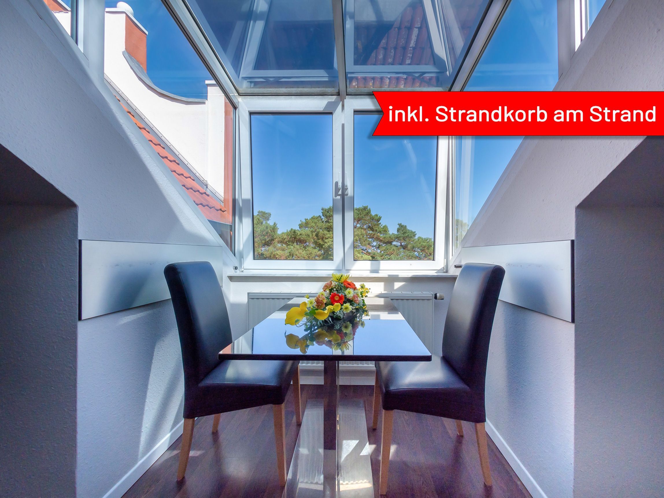 Ein Highlight ist der traumhafte Meerblick, den Sie durch die verglaste Gaube direkt vom Apartment aus genießen können. Zur Wohnung gehört außerdem ein eigener Strandkorb am Strand Ihr ganz persönlicher Logenplatz an der Ostsee.