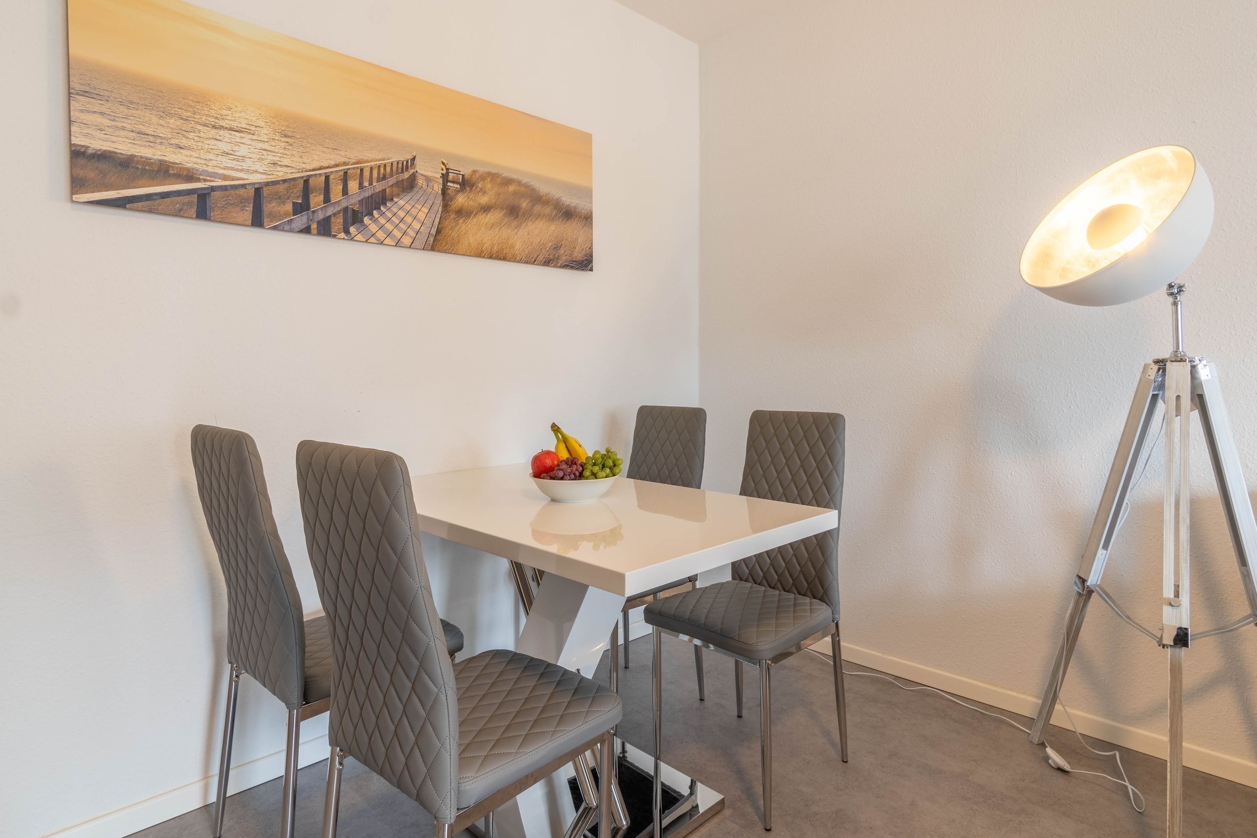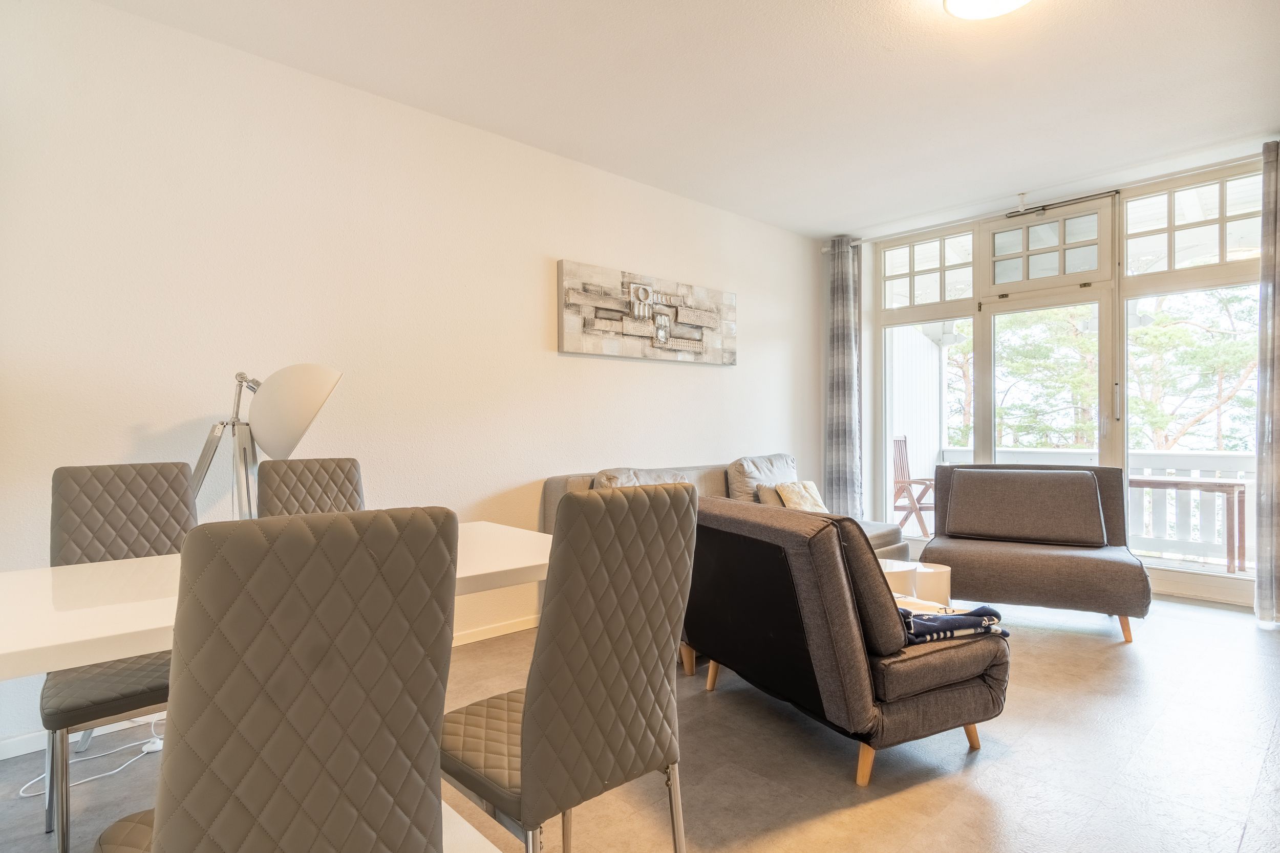Im Wohnbereich befindet sich eine Couch, die schnell zu einer Schlafmöglichkeit für zwei weitere Personen umfunktioniert werden kann, vorhanden. Au0erdem haben Sie einen großzügigen Essbereich sowie ein TV zur Verfügung.