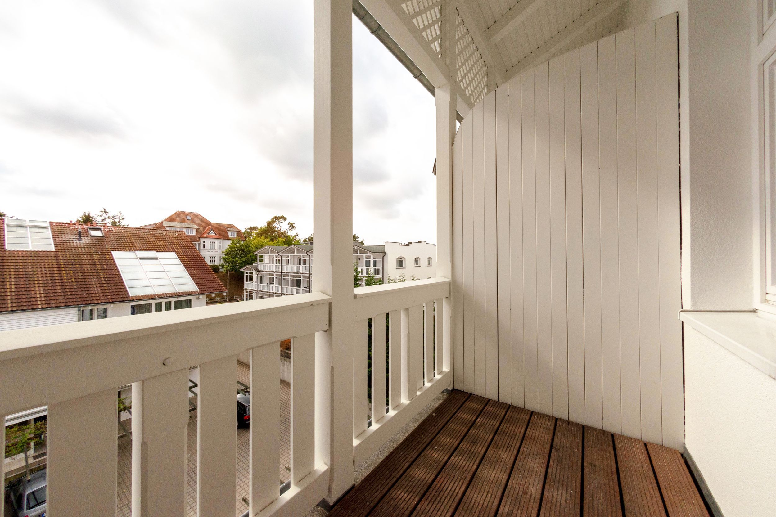 Das Apartment 10 mit einer Größe von 52 qm besteht aus einem Wohnbereich, einem Schlafzimmer sowie einem Duschbad. An dem Wohnbereich schließt sich der möblierte Balkon mit Meerblick an. Vom Schlafzimmer können Sie einen zusätzlichen Balkon erreichen.