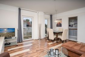 Die Ferienwohnung im 2.OG besteht aus einem Wohnraum, separater Küche, 2 Schlafzimmern und einem möblierten Balkon. Das Apartment ist ca 78 qm groß.