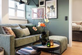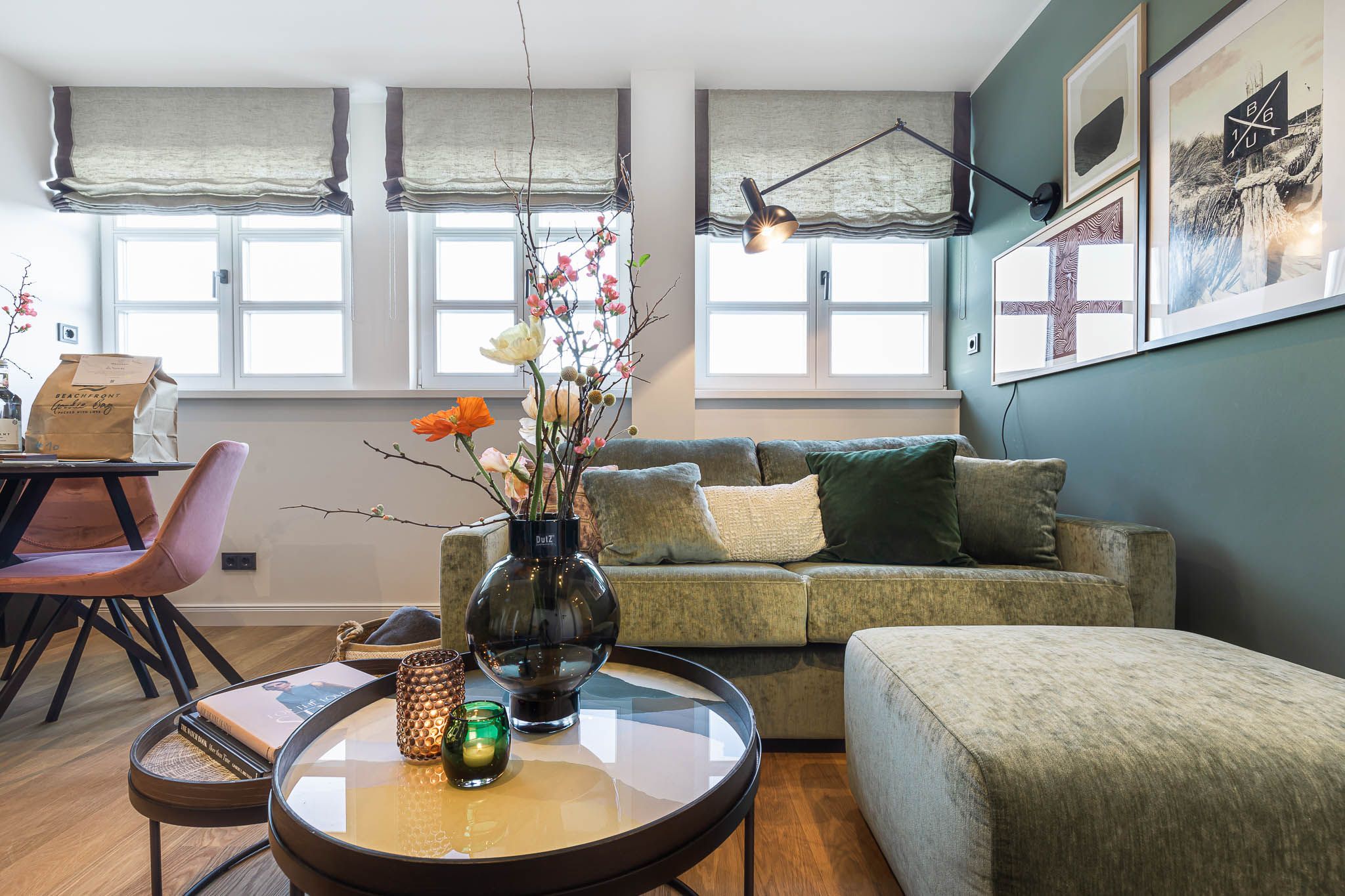 Das Apartment „Living Lorens No. 10“ überzeugt mit hohen Decken, lichtdurchfluteten Räume und einer hochmodernen Einrichtung. Beim Betreten des Apartments kommen Sie in den offenen Wohn- und Essbereich inklusive Schlafsofa. Im Schlafzimmer finden Sie ein exklusives COCO-MAT Boxspringbett für besten Schlafkomfort vor. Die Küche ist ausgestattet mit Geräten von Top-Markenherstellern wie Gaggenau und Miele, so macht das Kochen gleich doppelt so viel Spaß. Bei Ankunft erwartet Sie zusätzlich ein kleines Starterpaket für Badezimmer und Küche.
