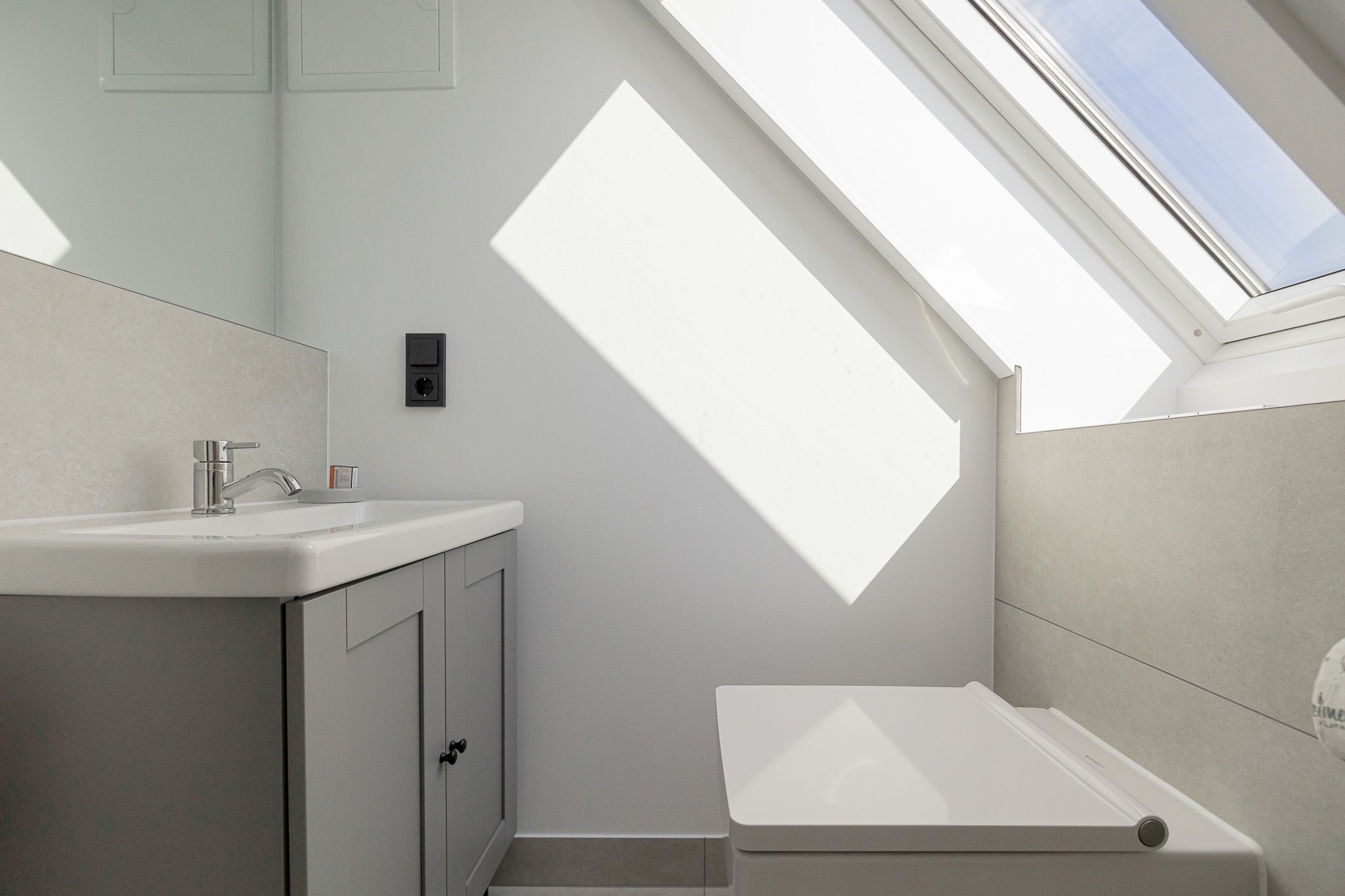 Ein weiterer Wohn- und Arbeitsbereich inklusive WC-Bad befindet sich auf der oberen Etage.