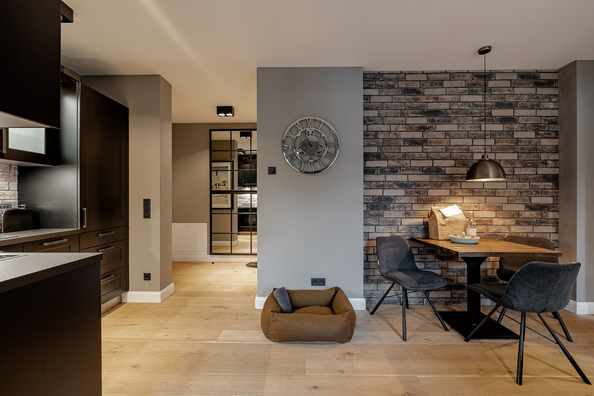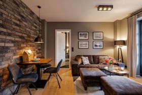 Das Apartment bietet Ihnen eine absolute Wohlfühlatmosphäre: hohe Decken, lichtdurchflutete Räume und eine stylische, moderne Ausstattung machen Ihren Aufenthalt zu etwas ganz Besonderem. Betreten Sie die Ferienwohnung, befinden Sie sich in dem großen und geräumigen Wohn- und Esszimmer inklusive eines Schlafsofas.