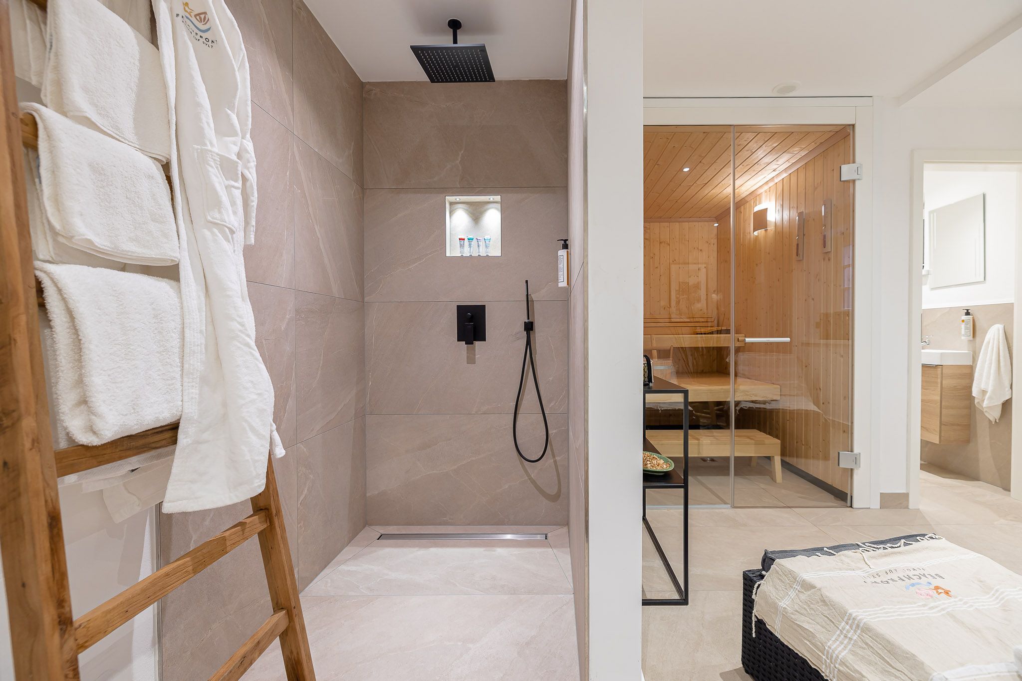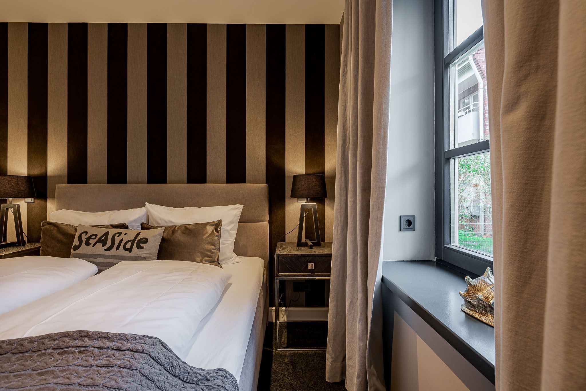 Kochen macht hier ganz besonders Spaß, da die Küche mit Geräten von Top-Markenherstellern wie Miele und Gaggenau ausgestattet ist. Sie genießen Ihren Kaffee morgens gerne draußen? Dann wird die charmante Terrasse in Richtung Osten garantiert ein echtes Highlight für Sie sein. Gemeinsam mit Ihren Liebsten können Sie dort Ihre morgendliche Tasse Kaffee genießen und den Sonnenaufgang anschauen. Zudem erwartet Sie bei Ankunft ein kleines Starterpaket für Badezimmer und Küche. Für einen erholsamen Schlaf sorgt das gemütliche Boxspringbett im Schlafzimmer.