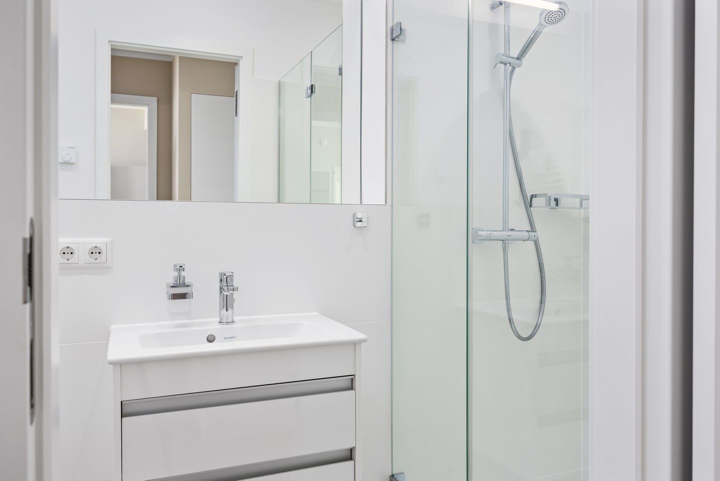 Das größte Schlafzimmer beinhaltet ein modernes Boxspring-Doppelbett (1,80 x 2,00 m), einen eigenen SMART-TV (43 Zoll), einen Kleiderschrank und bietet den Luxus eines ganz privaten, angeschlossen Badezimmers! Die zwei weiteren Schlafzimmer verfügen über Boxspringbetten (Doppelbett mit den Maßen 1,60 x 2,00 m bzw. ein Einzelbett mit den Maßen 0,90 x 2,00 m). In den stilvollen Badezimmern befinden sich Fußbodenheizung, Handtuchwärmer, eine ebenerdige Regendusche, WC, Waschtisch und Föhn.