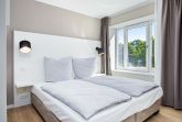 Beide Schlafzimmer beinhalten jeweils ein modernes Boxspring-Doppelbett (1,80 x 2,00 m bzw. 1,60 x 2,00 m) und Kleiderschrank. Das größere der beiden Schlafzimmer besitzt überdies einen eigenen SMART-TV (43 Zoll).