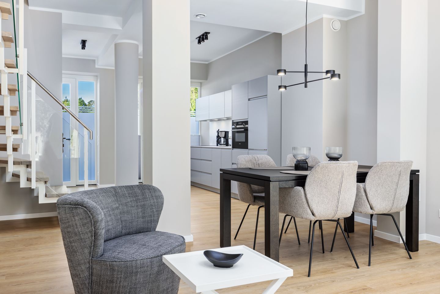Das geschmackvoll eingerichtete Nichtraucher-Apartment verfügt über Fußbodenheizung, z.T. bodentiefe Fenster, kostenfreies WLAN und eine voll ausgestattete offene Küche mit Geschirrspüler, Kühlschrank mit Gefrierfach, Filterkaffeemaschine, Mixer, Toaster, Wasserkocher, Mikrowelle mit Backofenfunktion und 4-Felder Induktionsherd von BORA sowie über einen behaglichen und großzügigen Wohn-Essbereich. Im Wohnbereich befindet sich ein großer SMART-TV (55 Zoll).