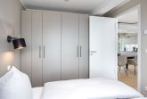 Beide Schlafzimmer beinhalten jeweils ein modernes Boxspring-Doppelbett (1,80 x 2,00 m bzw. 1,60 x 2,00 m), Kleiderschrank und bieten den Luxus eines jeweils eigenen Badezimmers! Eines der Schlafzimmer verfügt überdies über einen eigenen SMART-TV (43 Zoll). In den stilvollen Badezimmern mit Tageslicht befinden sich Fußbodenheizung, Handtuchwärmer, eine ebenerdige Regendusche, WC, Waschtisch, Föhn und Fenster.