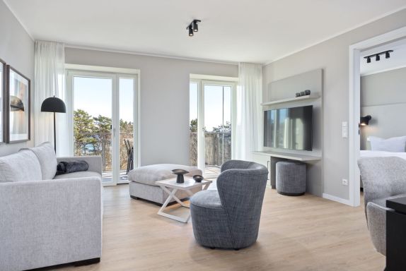 Die Strandresidenzen in den drei Häusern Dänholm, Mönchgut und Vilm liegen in der ersten Reihe am vom wohl schönsten Strand der Insel – kilometerlang und breit, feinsandig mit leichter Brandung und sanft abfallend. Geschützt durch den Dünenwaldstreifen bietet der Strand ideale Bedingungen für Familien mit Kindern.