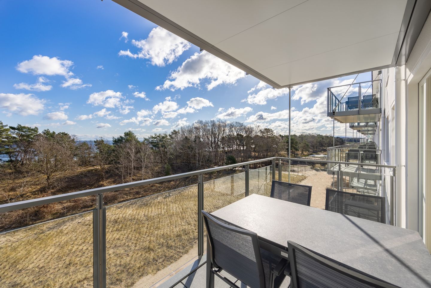 Das behagliche Apartment bietet euch einen Balkon zur Meerseite mit Blick zu den Dünen und dem Dünenwald bis zur Ostsee; hier lässt sich wunderbar entspannen und das maritime, wohltuende Klima der See genießen.