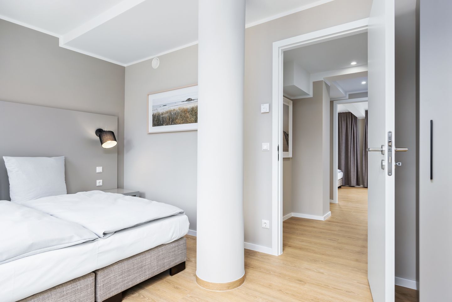 Die Premium-Apartments mit WLAN verfügen über Balkon, Terrasse oder Dachterrasse zum Meer gelegen und sind hochwertig und geschmackvoll eingerichtet. Überwiegend mit zwei Badezimmern ausgestattet eignen sich die Urlaubsdomizile ideal für Familien! Ein PKW-Stellplatz sowie Abstellmöglichkeiten für eure Fahrräder draußen und ein geschützter, abschließbarer Fahrradraum stehen euch kostenfrei zur Verfügung.