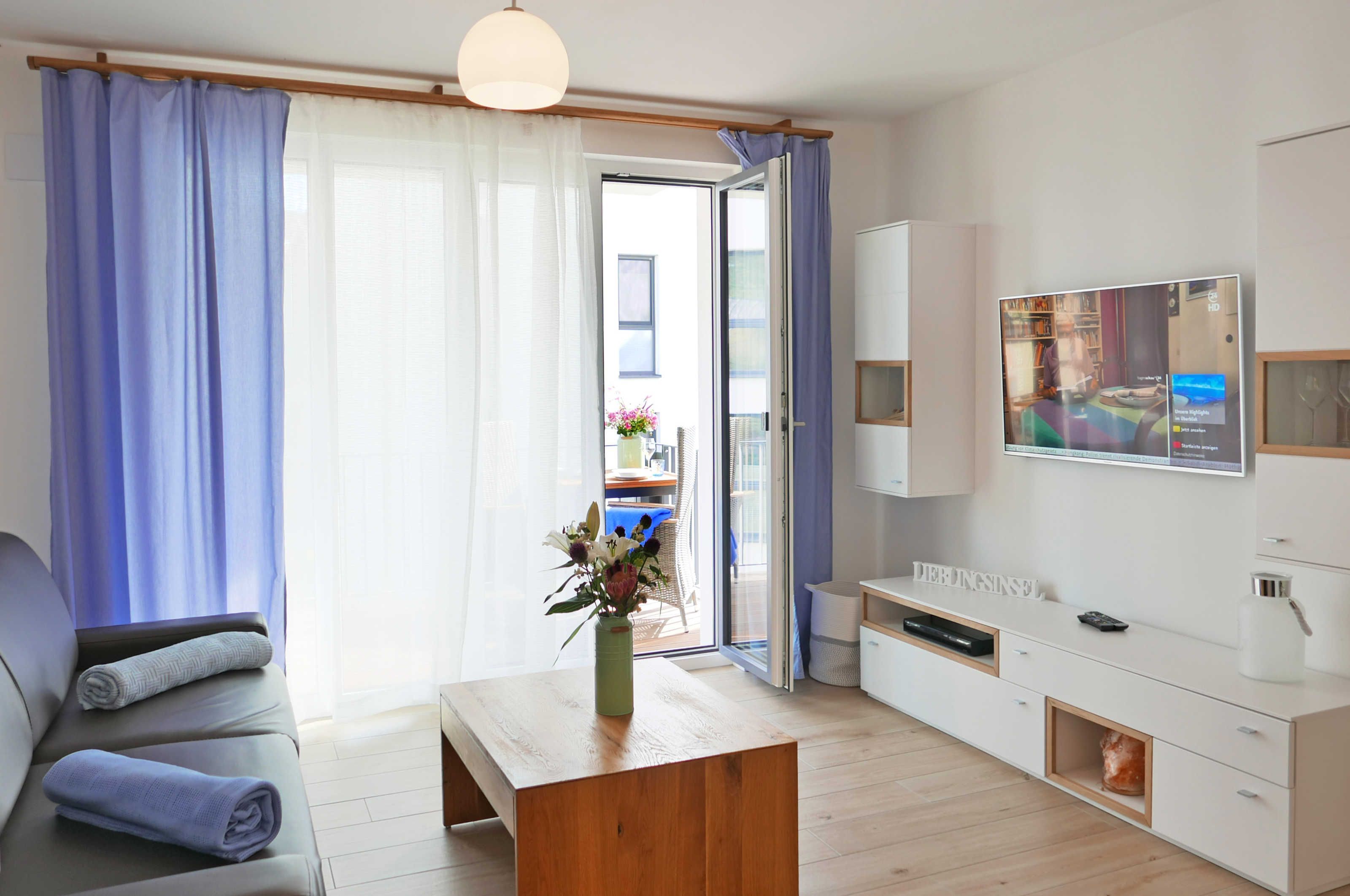 Die Elektrosmog reduzierte 2-Zimmer-Ferienwohnung für 4 Personen befindet sich in dem neu eröffneten Villen-Ensemble (Sommer 2019) direkt am Baaber Strand. Die moderne und großzügige Ferienwohnung liegt im 1. OG und verfügt über einen Balkon, auf dem Sie herrlich ausspannen können.